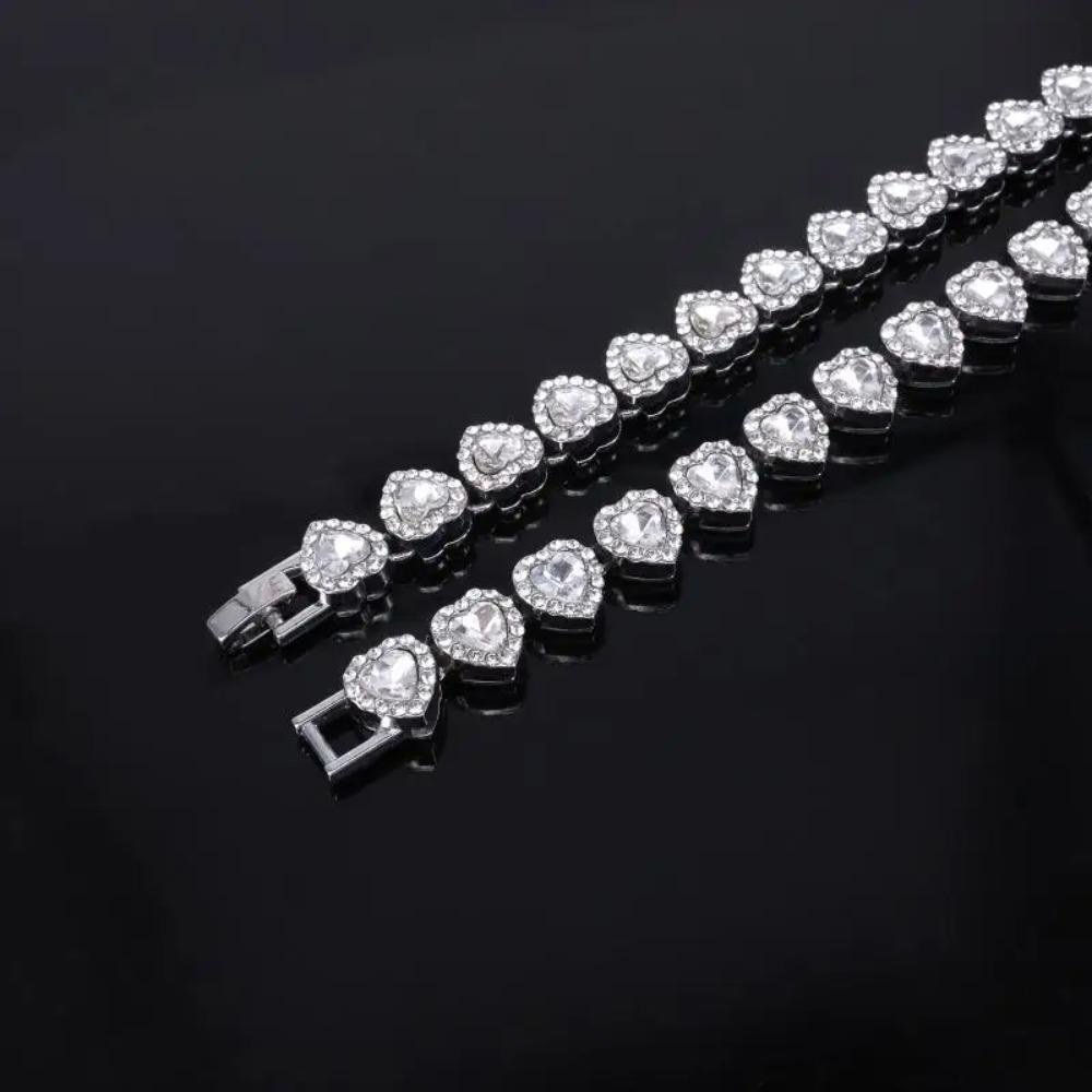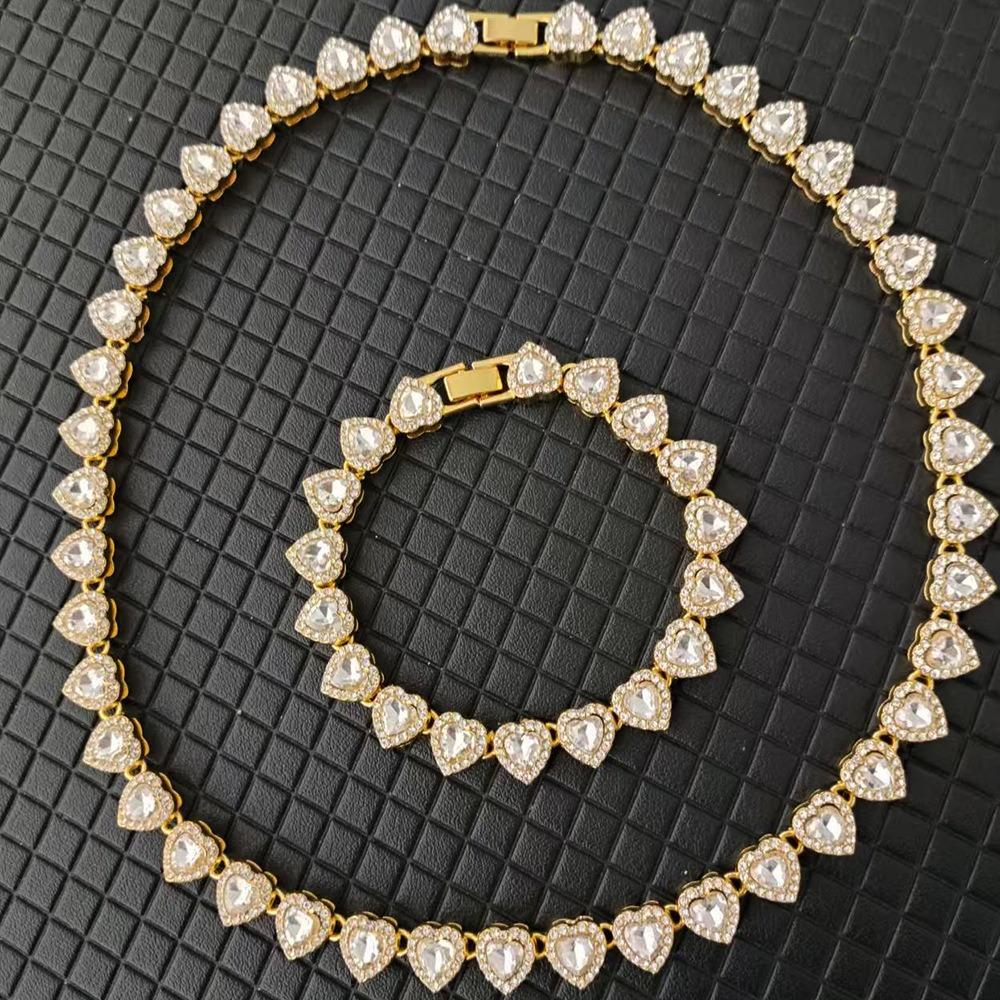 Shiny Love Shape Rhinestone Bracelet Zinc Zinc Zinc Alloy Tennis Chain Choker Valentine's Day Necklace Gift