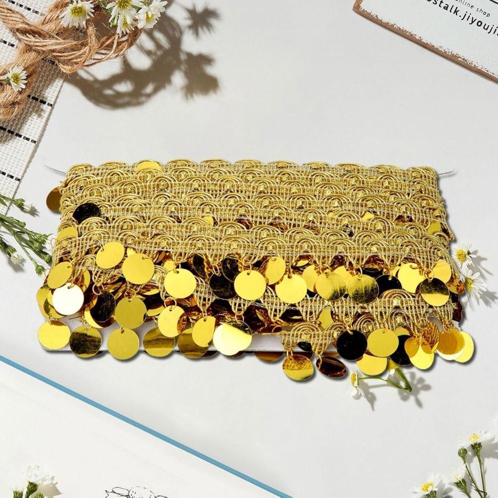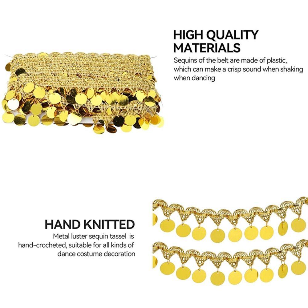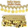 Creative Belly Dance Waist Chain Golden Pendant Sequins Lace Trim Stage Costume