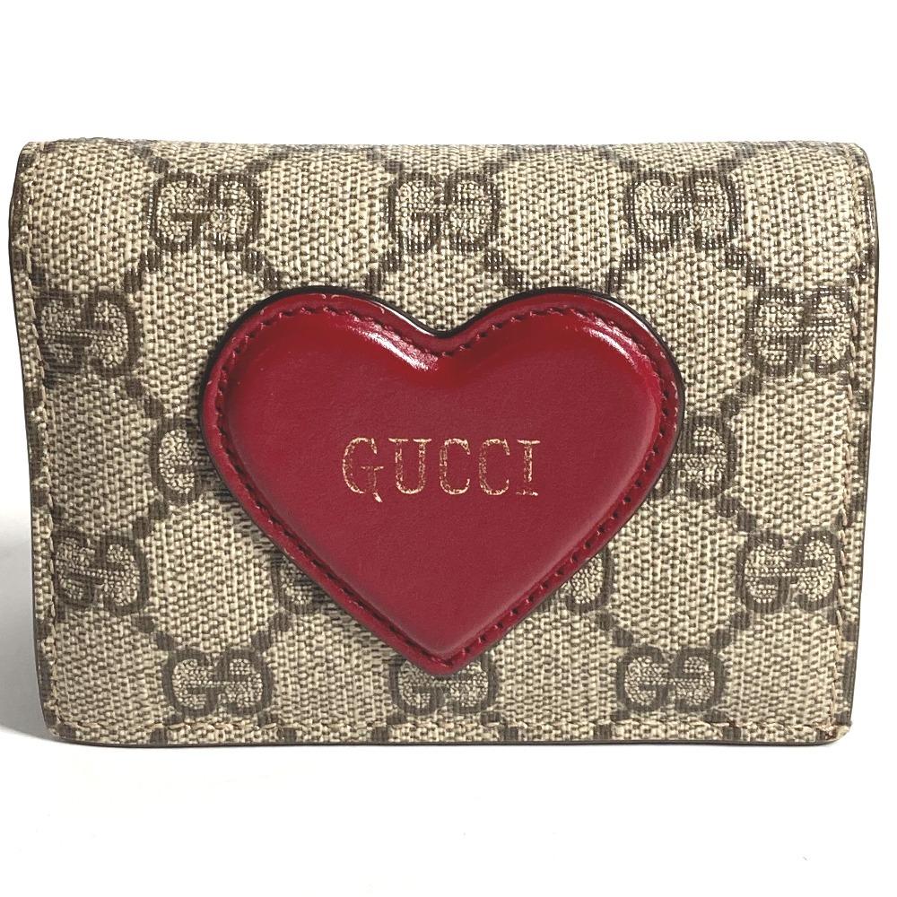 GUCCI 648848 Heart logo Compact wallet Folded wallet GG Supreme Canvas Beige/Red