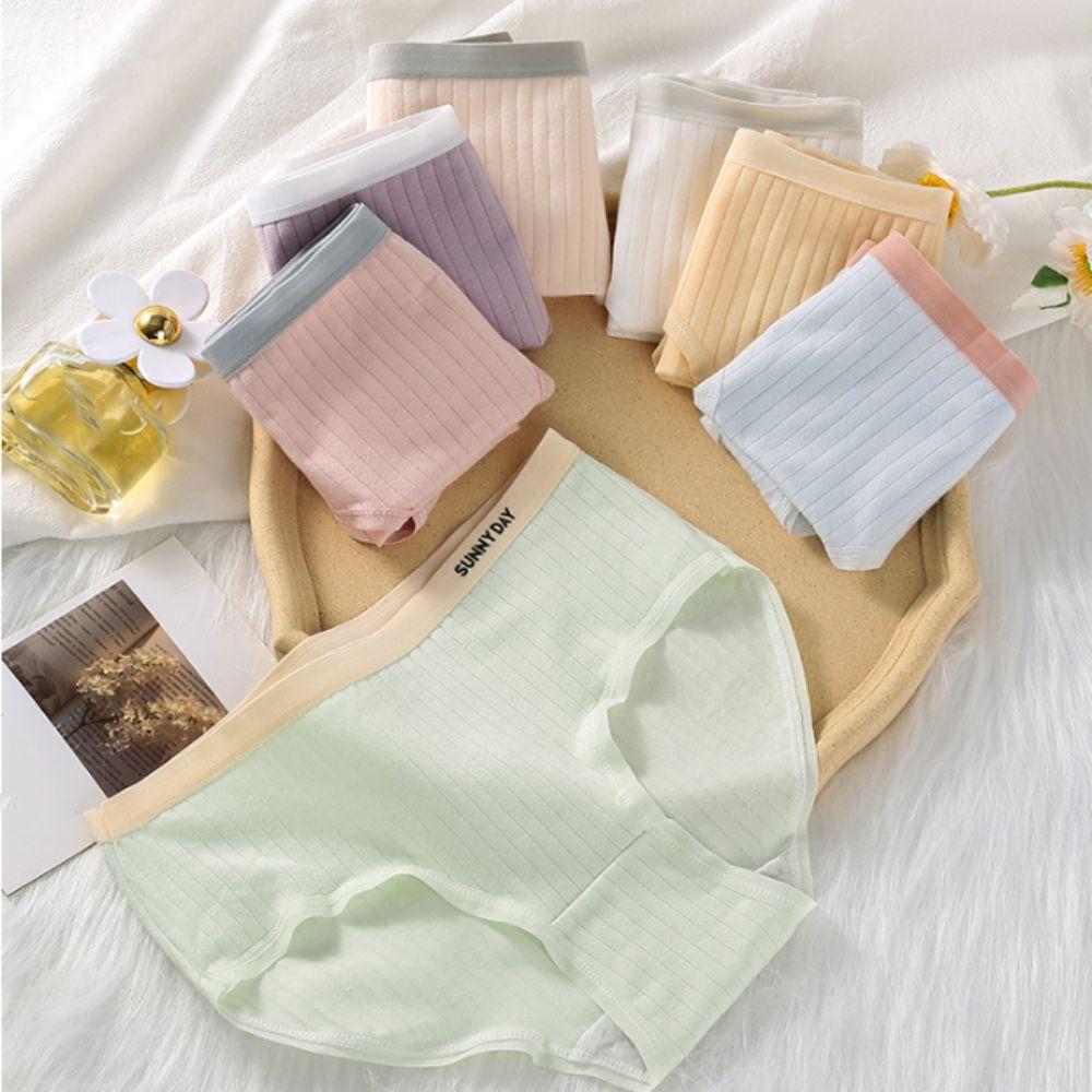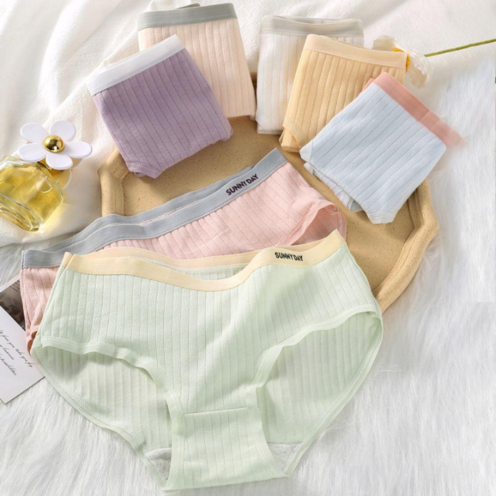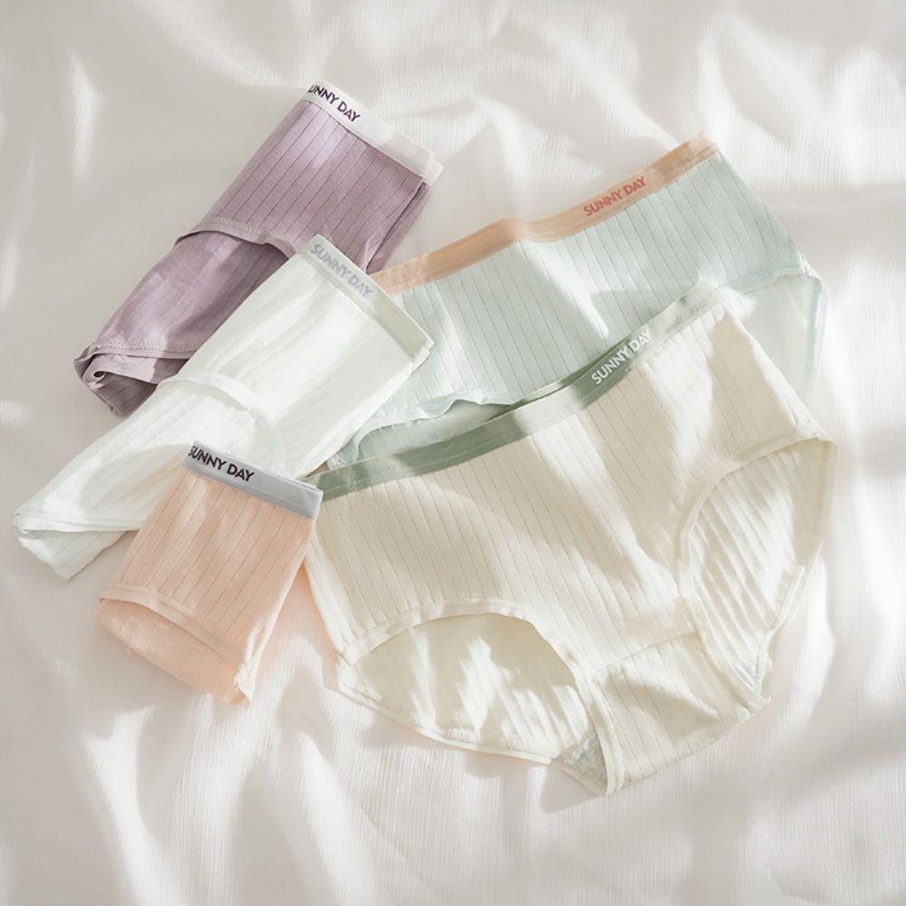 4Pcs Mid Waist Underwear for Women Letter Stripe Underpants Fashion Simple Briefs Gifts