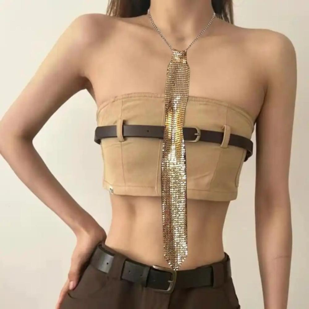 Adjustable Crystal Rhinestone Neck Tie Soft Glitter Cravat Metal Sequin Necktie Music Festival — купить товар онлайн с бесплатной доставкой по всему миру!
