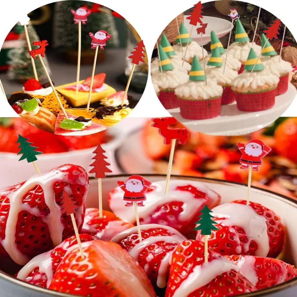 50/100Pcs Santa Claus Christmas Fruit Picks Disposable Fruit Salad Bamboo Sticks Dessert