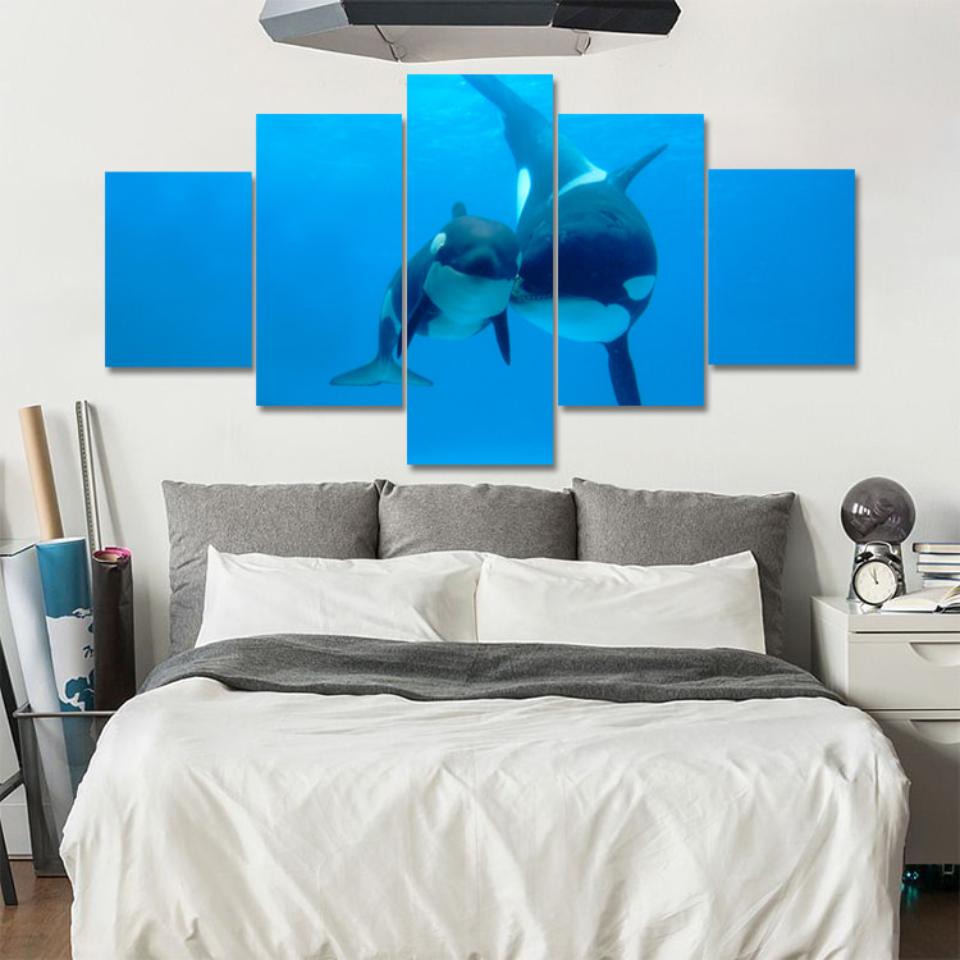 Blue ocean whale 5 pcs Modern Home Wall Decor Canvas Picture Art HD Print Painting On Canvas for Living Room No Frame