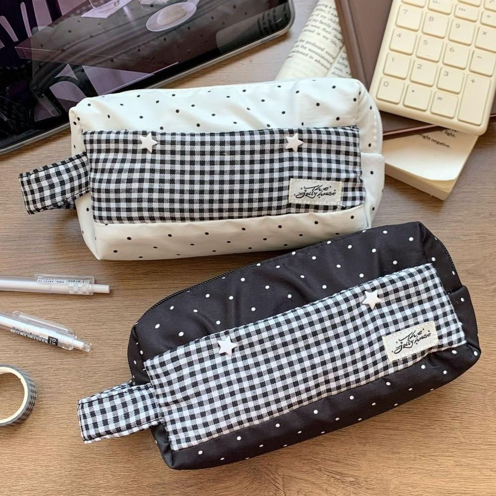 Polka Dot Star Plaid Cloth Pencil Case Large Capacity Pen Storage Bag Handheld Pencil Bag Student