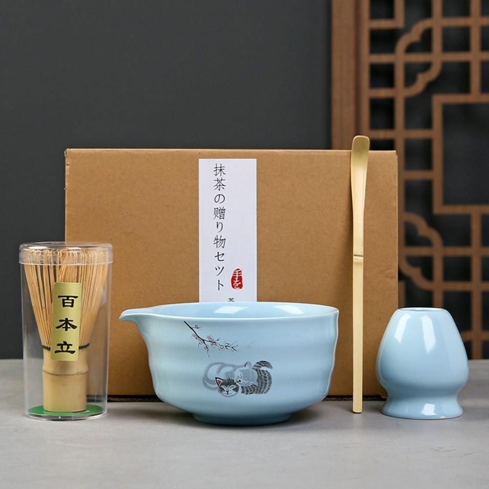 4PCS Matcha Whisk Holder Matcha Whisk Set Ceramic Bamboo Matcha Making Kit Tea Lovers