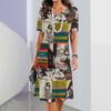 Повседневные платья женские с коротким рукавом Сарафаны 3D-печать Модные платья больших размеров Мини-платья Халаты