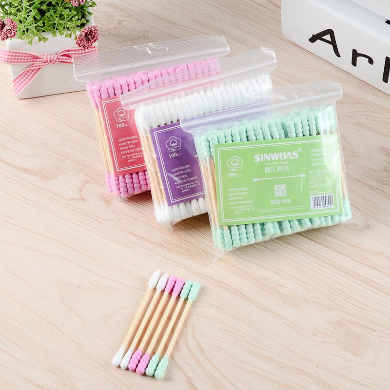 100 шт./уп. Макияж для медицинских женщин Двусторонние одноразовые деревянные палочки Ватные палочки с наконечником