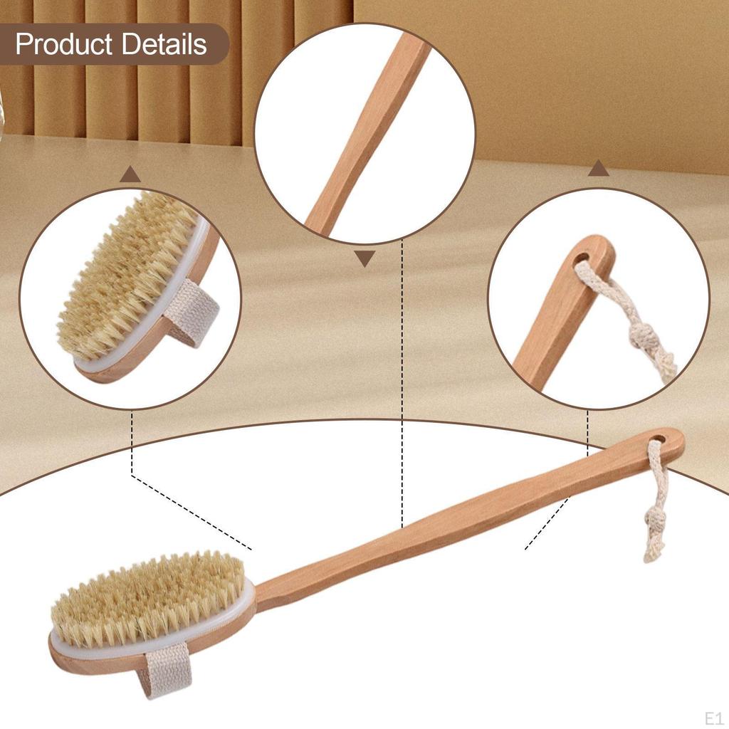 Back Brush Shower Scrubber Lightweight Deep Cleaning Soft Bristles Long Wood Handle for Gift