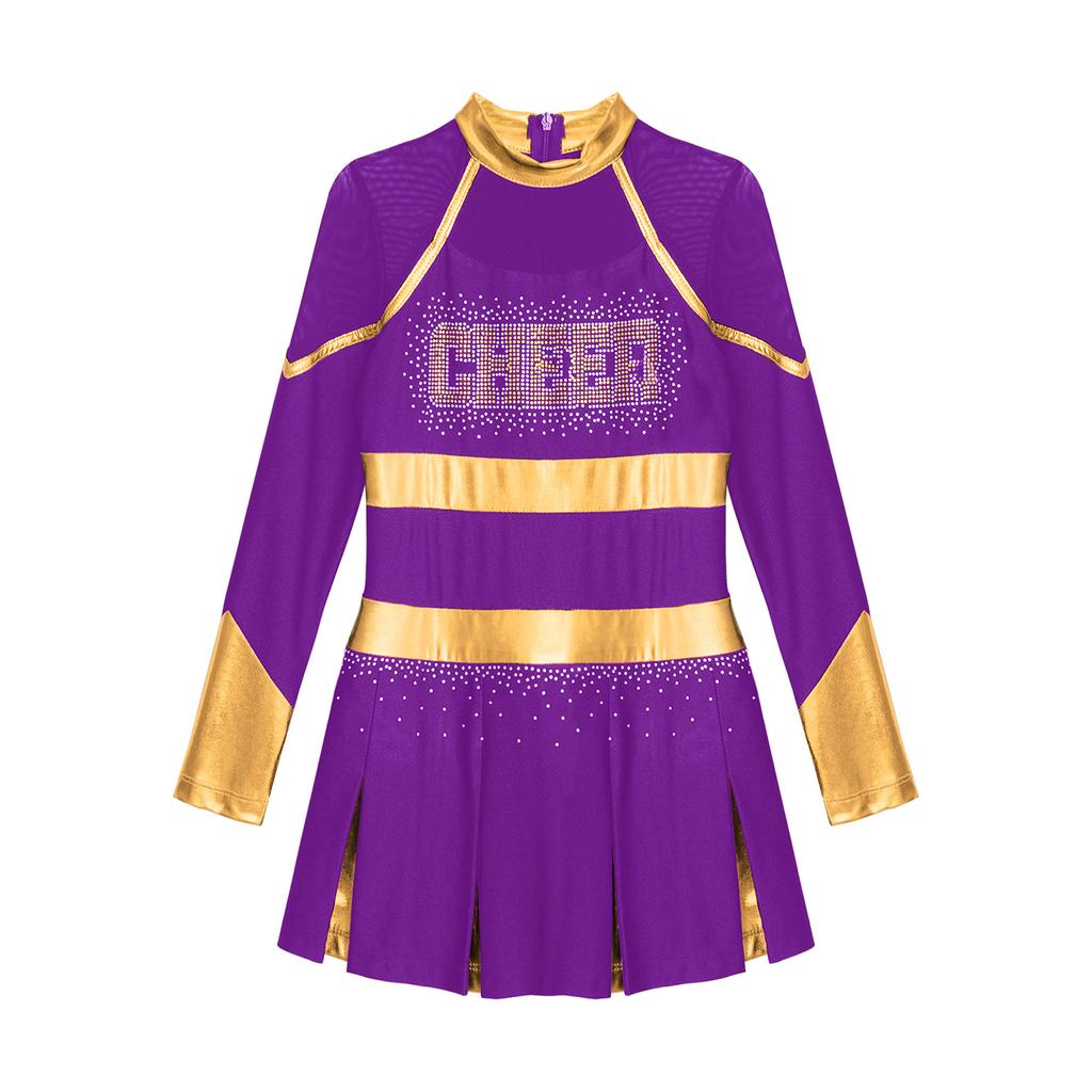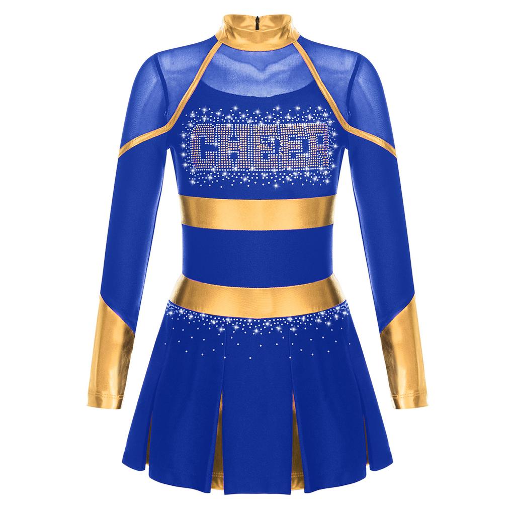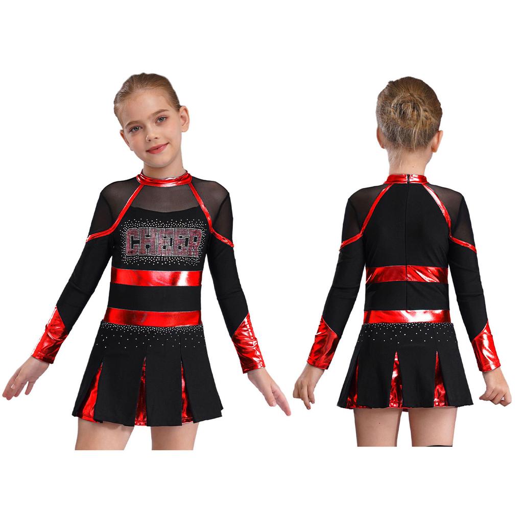 Детский костюм чирлидера для девочек, блестящее платье для чирлидинга с длинным рукавом и буквенным узором