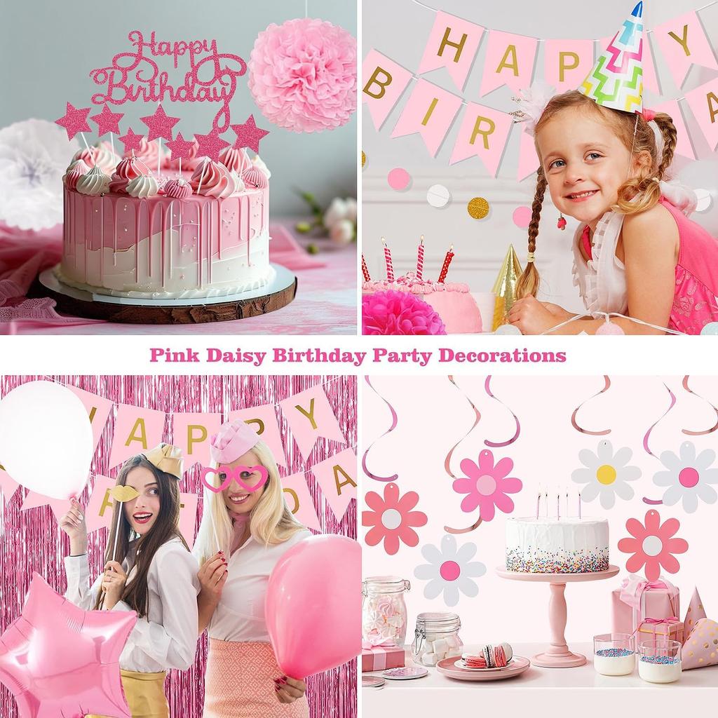 Pink Red Party Decorations kits for Girls Women with Happy Birthday Banner,