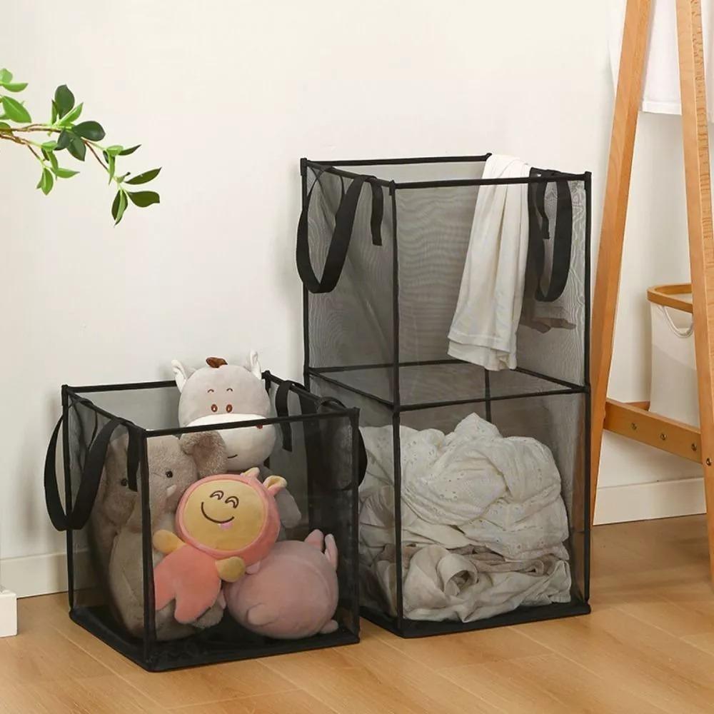 Square Laundry Basket Foldable Storage Basket New Mesh Basket