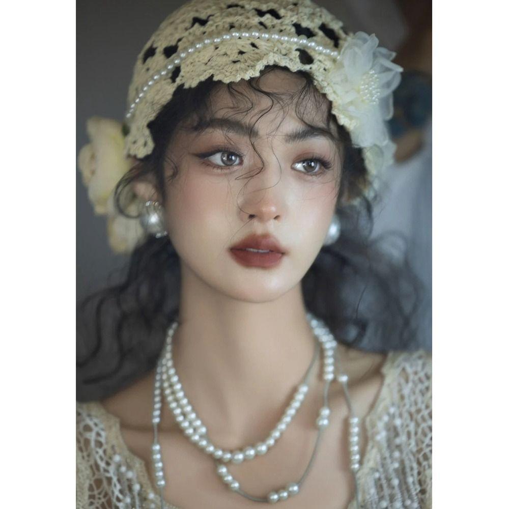 Цветы Берет Кепка Кружева Skullies Hat Дышащая вязаная шапка для женщин