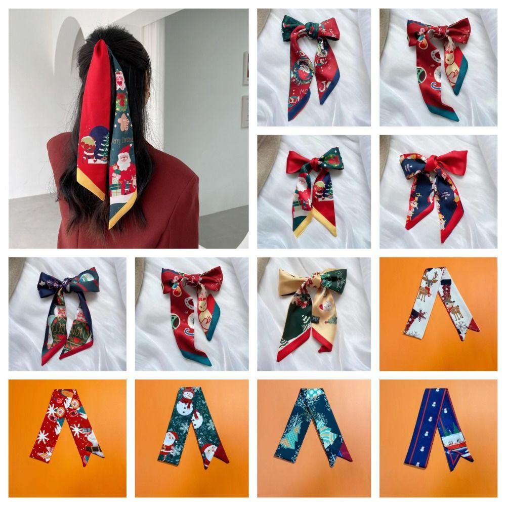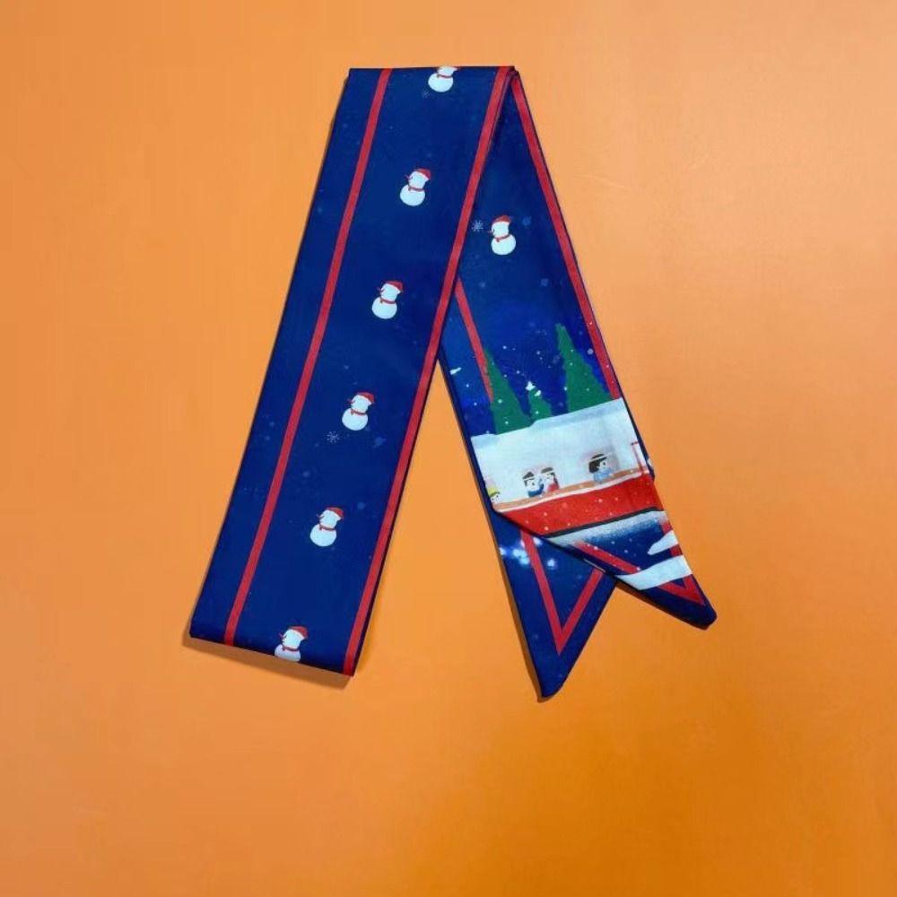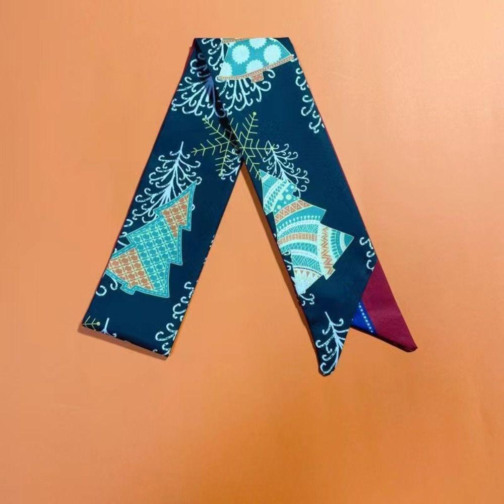 Ribbon Headband Christmas Silk Scarf Printed New Year Scarf Retro Long Scarf Women