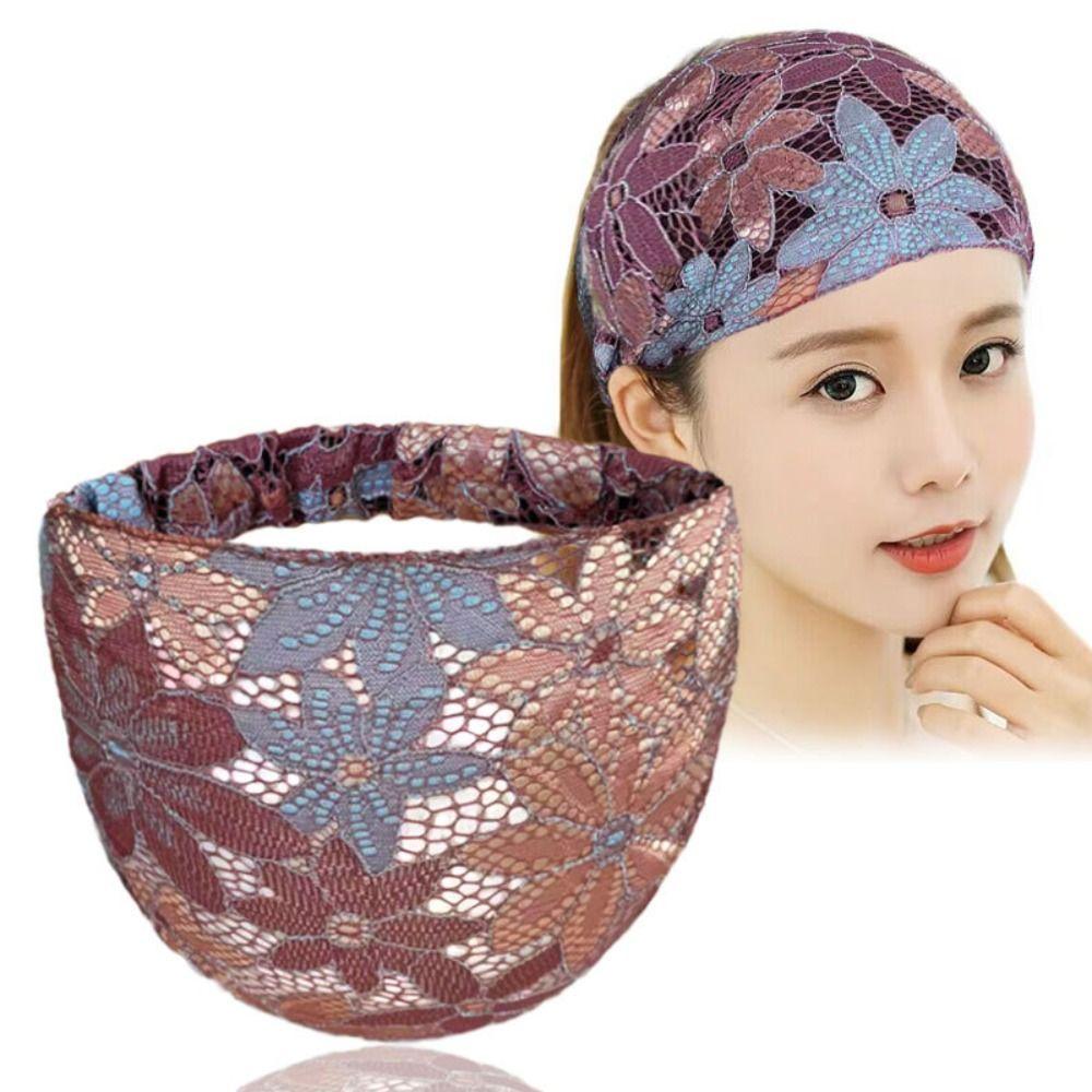 Обруч для волос, кружевные ленты для волос, нескользящая широкая боковая повязка на голову, модная сетчатая повязка на голову с цветком для мамы