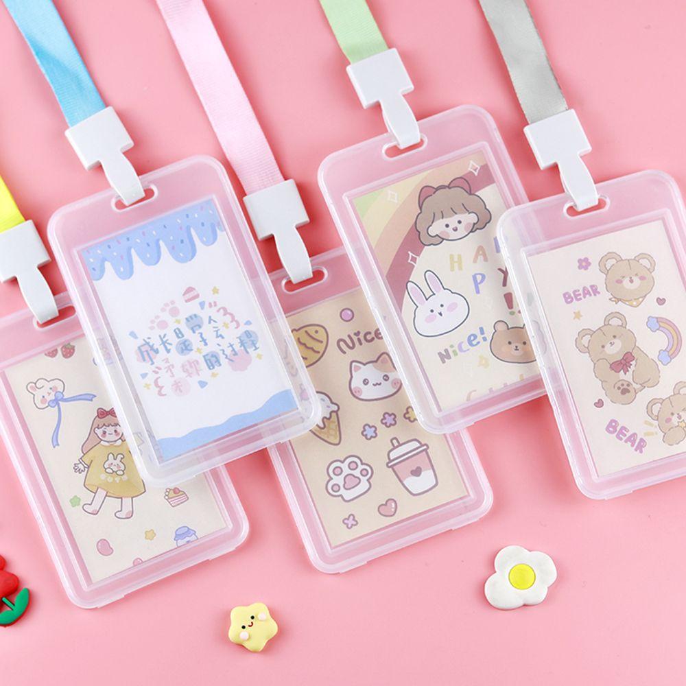 Rope Plastic Card Sleeves ID Card Holder Badge Holder with Lanyard Vertical Name Tag Neck Lanyard