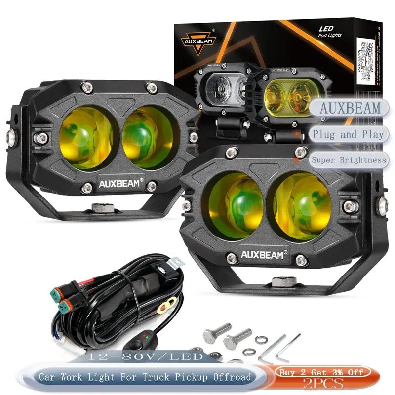 Auxbeam DC 12-80V 4 Inch Square Spot Light LED Work Light with Harness for Truck Pickup Offroad PCB Lens Aluminum alloy shell
