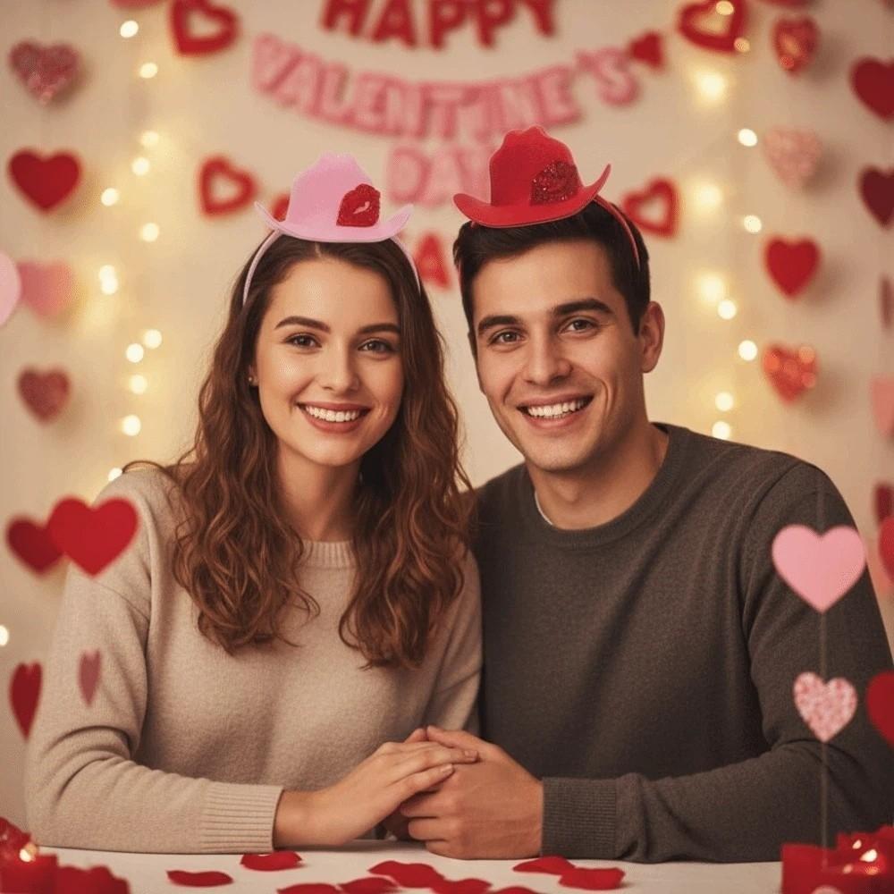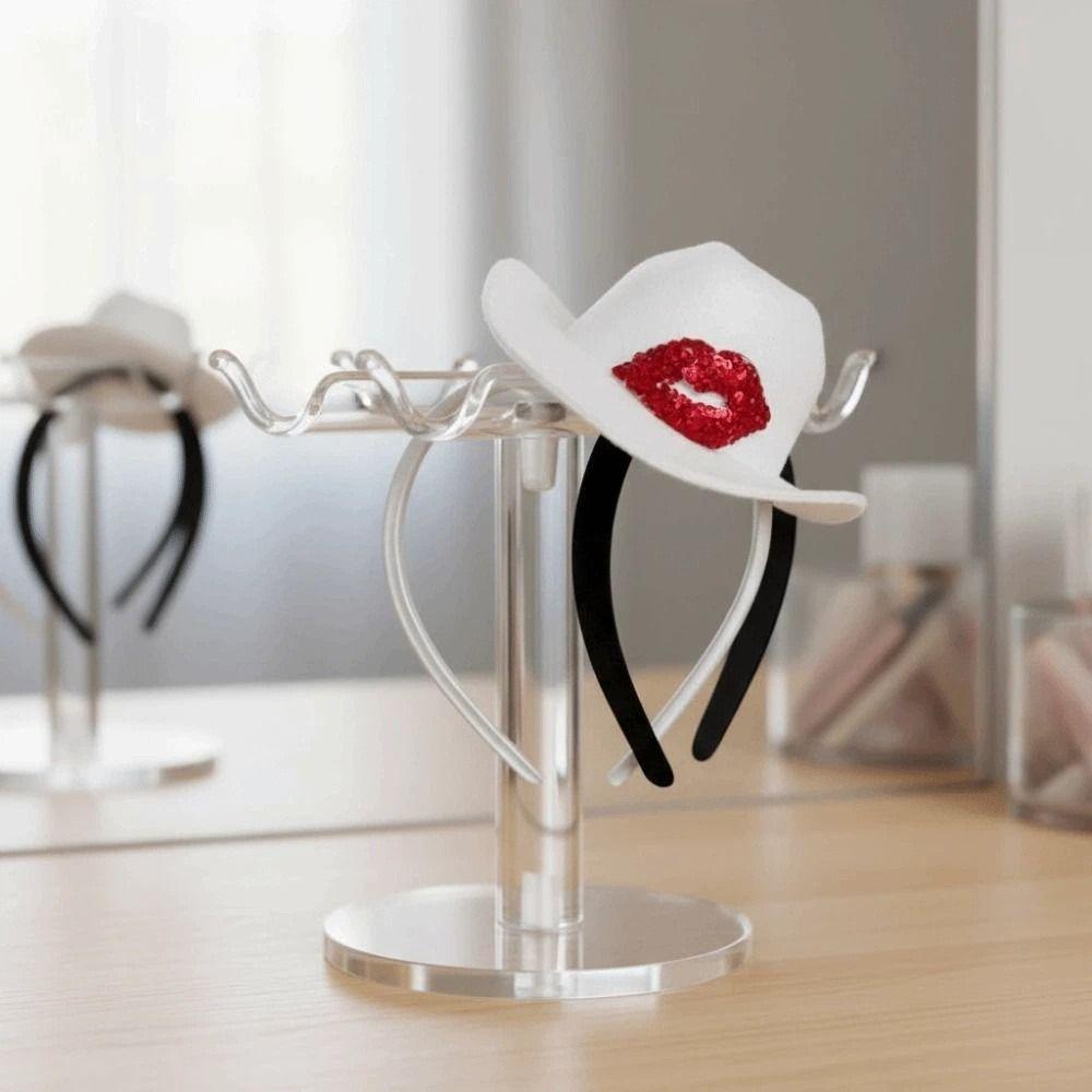 Felt Pink Cowboy Hat Headband Plastic Shining Lip Print Hairband Valentine's Day Hair Hoop Women