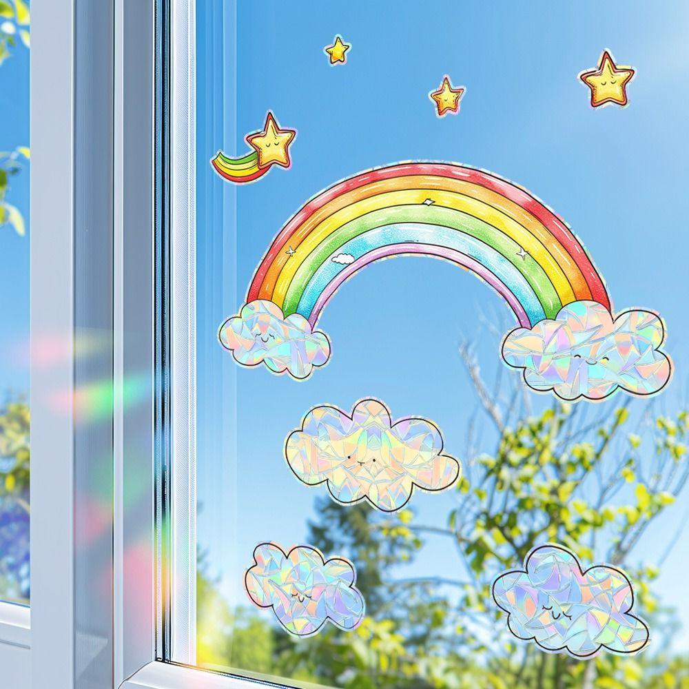 Colorful Sun Catcher Window Stickers Floral Butterfly Rainbow Prisms Sun Flower Decals