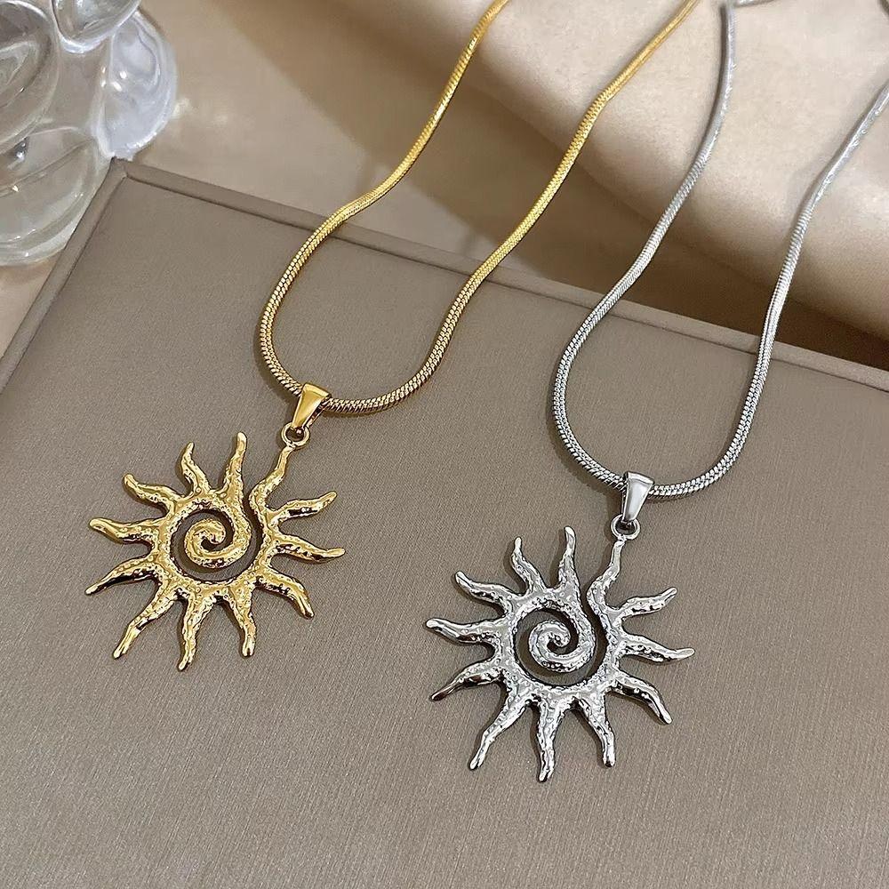 Waterproof Stainless Steel Necklace Stainless Steel Sweater Chain Metal Texture Pendant Daily Wear