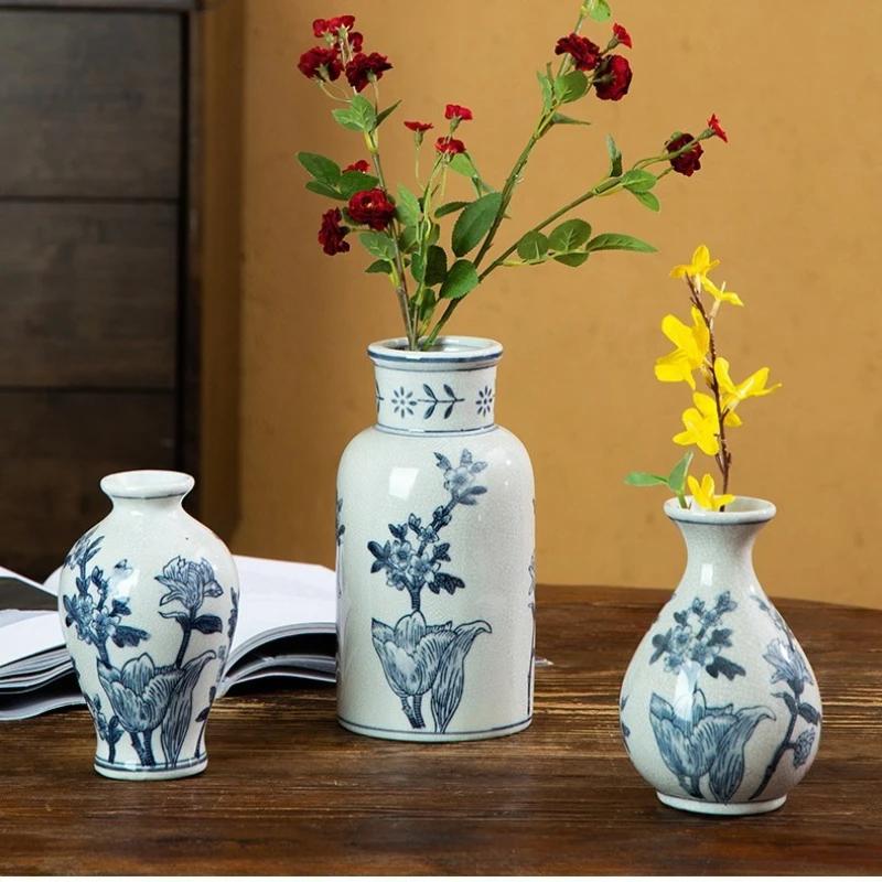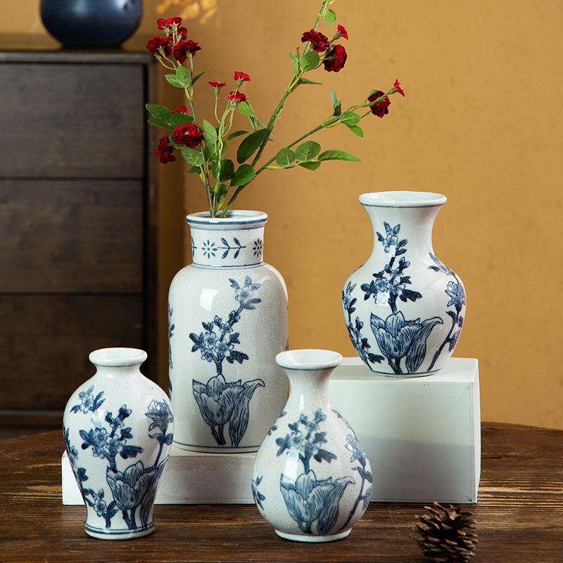 Винтажная сине-белая фарфоровая керамическая ваза, украшение, настольная гидропонная ваза для цветов, керамические украшения для дома, гостиной, фойе
