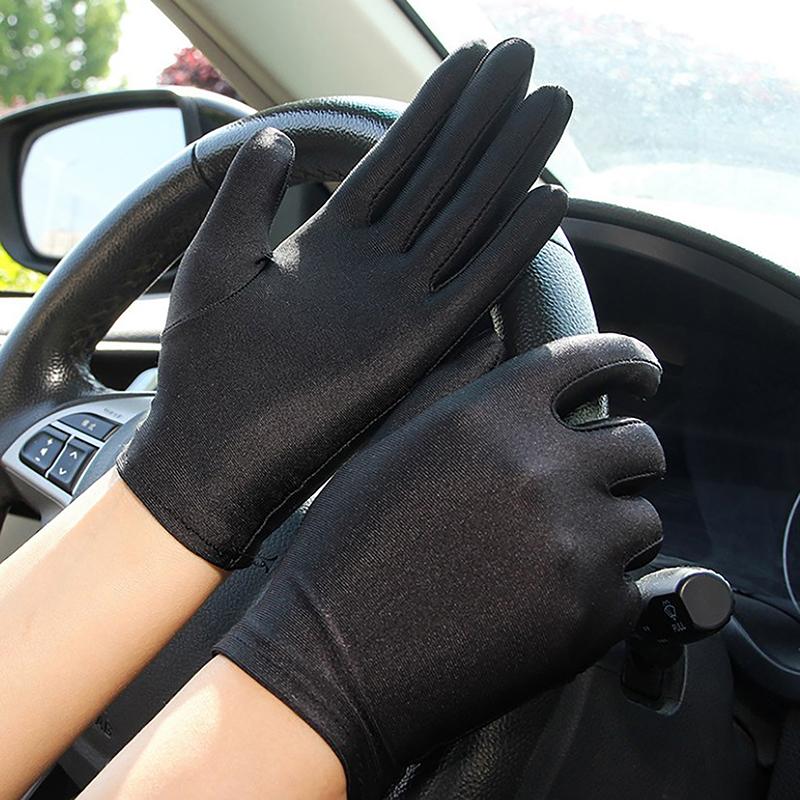 Женские перчатки для лета, солнцезащитные перчатки для вождения, женские, тонкие, хлопковые, милые, однотонные, нескользящие, для сенсорного экрана, дышащие