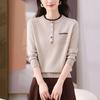 Женский вязаный свитер с круглым вырезом, дизайн с цветовыми блоками, Осень Зима, Новый, Элегантный, Модный, С длинным рукавом, Универсальный топ-пуловер