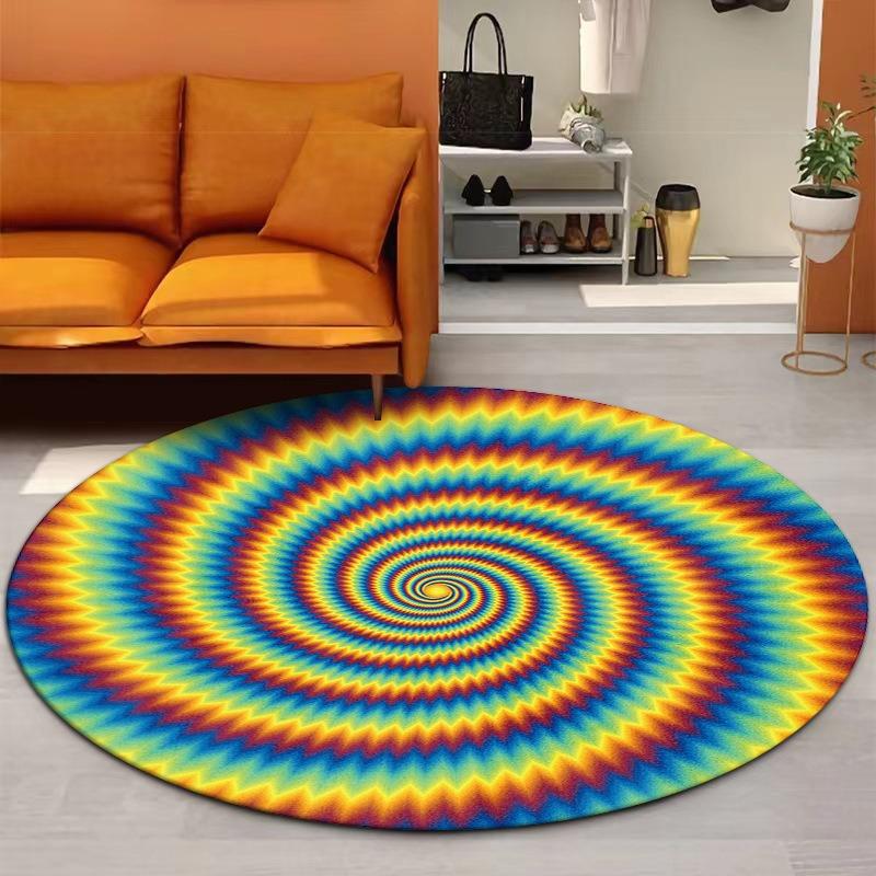 Colorful Spiral Round Carpet 3D Optical Illusion Pattern Mat Modern Artistic Home Decor Rug for Living Room Bedroom Game Room