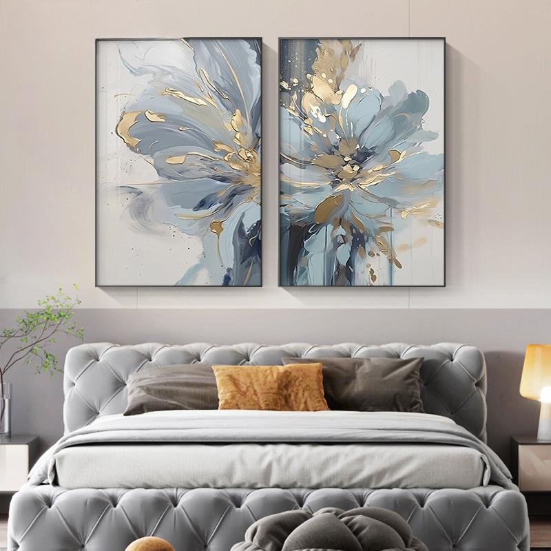 Роскошная картина для декора стен гостиной, абстрактная синяя цветочная печать на холсте, настенные картины для прихожей в спальне, современное настенное искусство