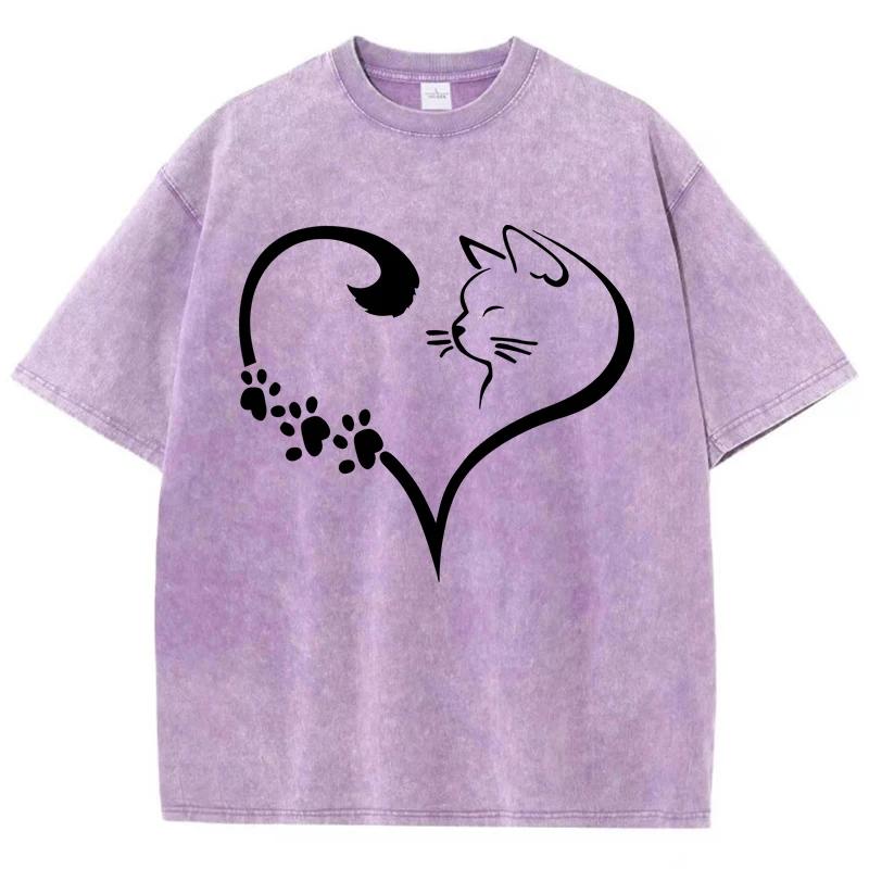 Милые футболки с принтом кота и сердца из мультфильма, мужские шикарные футболки оверсайз, дизайн, мягкая футболка, одежда для пожилых, дышащая