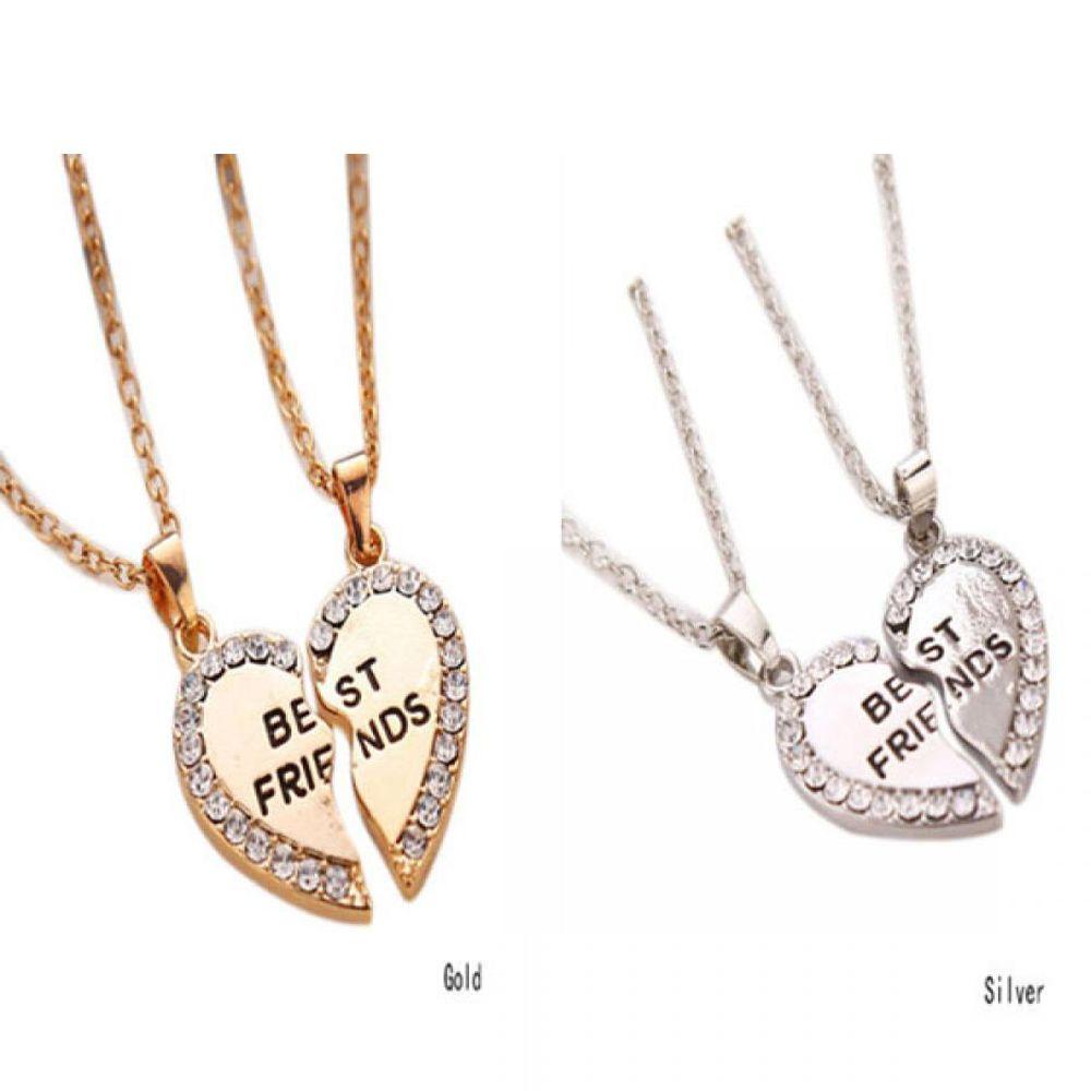 2PCS New Rhinestone Jewelry Crytral Friendship Bff Necklace Heart Pendants