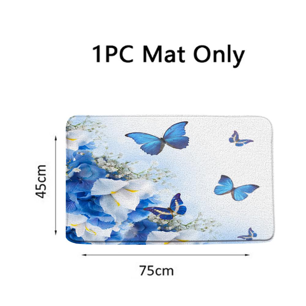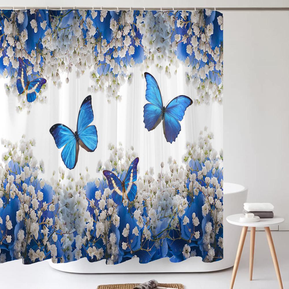 Водонепроницаемая шторка для душа для ванной комнаты Красивый синий цветок Бабочка Наборы штор для ванной Крышка для унитаза Нескользящий коврик Ковер Декор