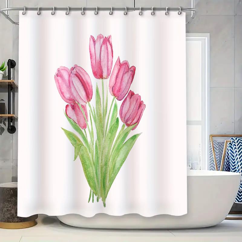 Цветочная шторка для душа с узором из ботанических тюльпанов, водонепроницаемая, моющаяся, для ванной комнаты, в современном стиле кантри, для дома