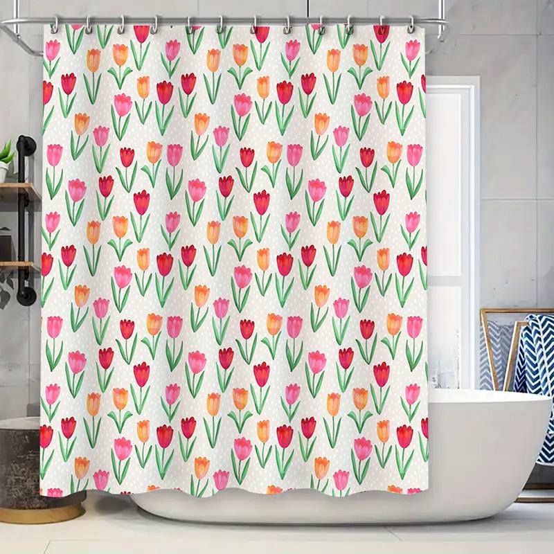 Цветочная шторка для душа Ботанический узор с тюльпанами Водонепроницаемый декор для ванной комнаты Винтажная Рустикальная Эстетика Фермерского дома Домашний текстиль