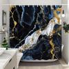 Сине-золотая текстурированная мраморная шторка для душа Черно-белый натуральный художественный узор Полиэстеровая ткань Стирающаяся шторка для душа Декор для ванной