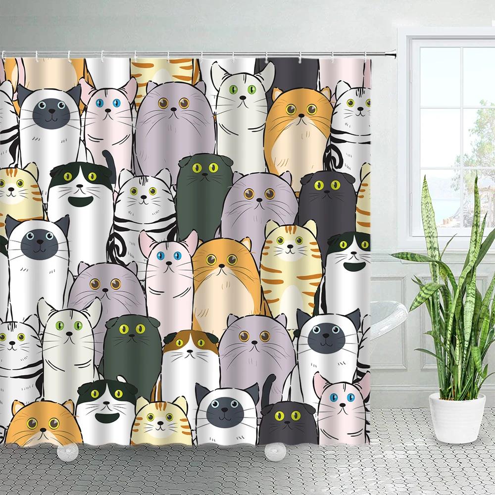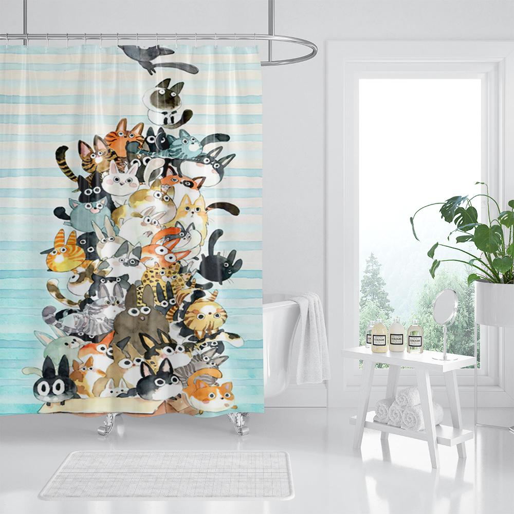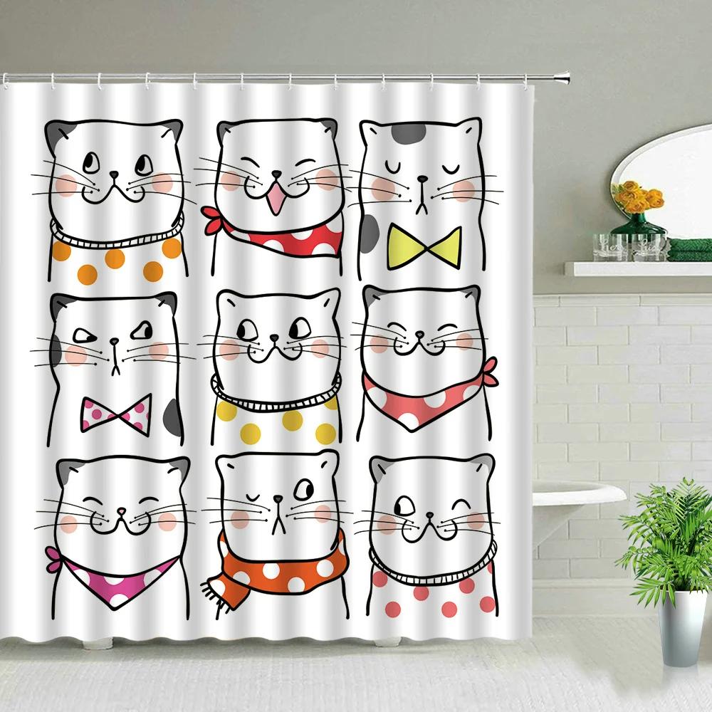 Занавеска для душа с принтом кота, цветная, мультяшная, милая, животное, медведь, полиэстеровая ткань, подвесные шторы, декор для ванной комнаты, ванны, с крючком
