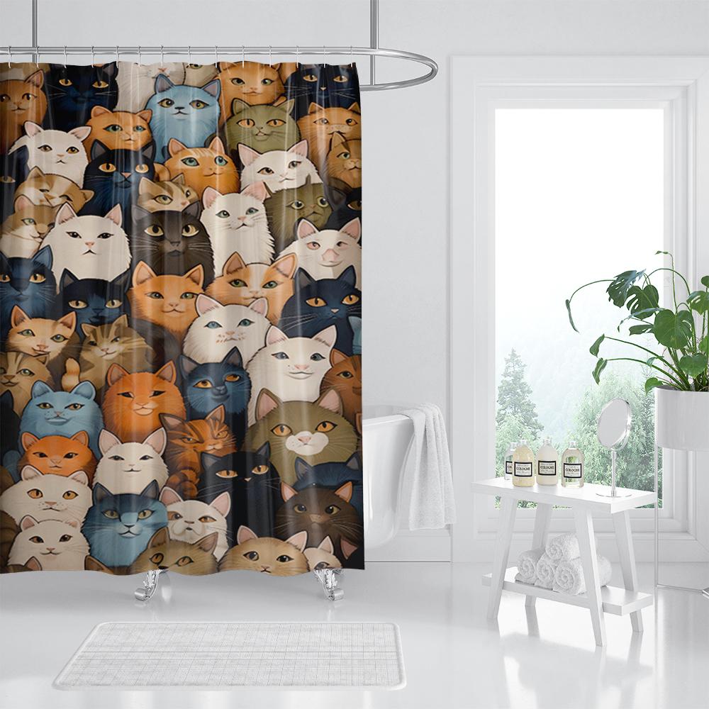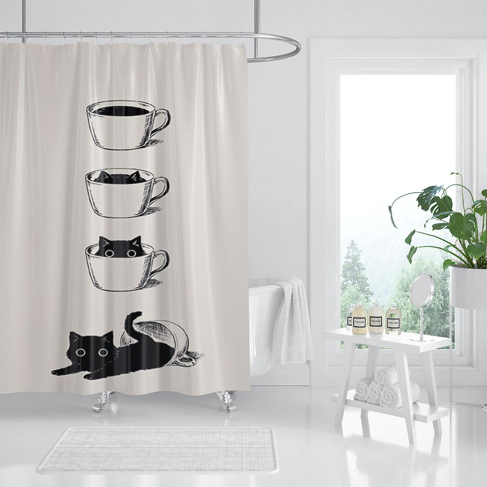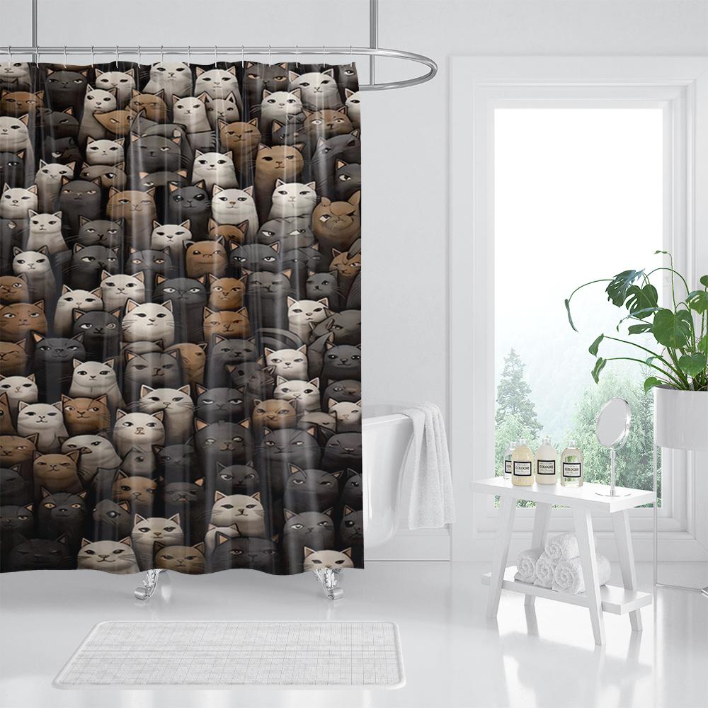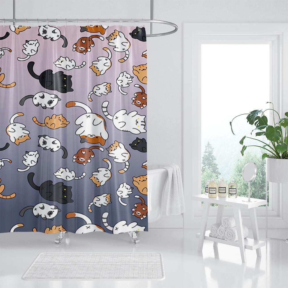 Занавеска для душа с принтом кота, цветная, мультяшная, милая, животное, медведь, полиэстеровая ткань, подвесные шторы, декор для ванной комнаты, ванны, с крючком