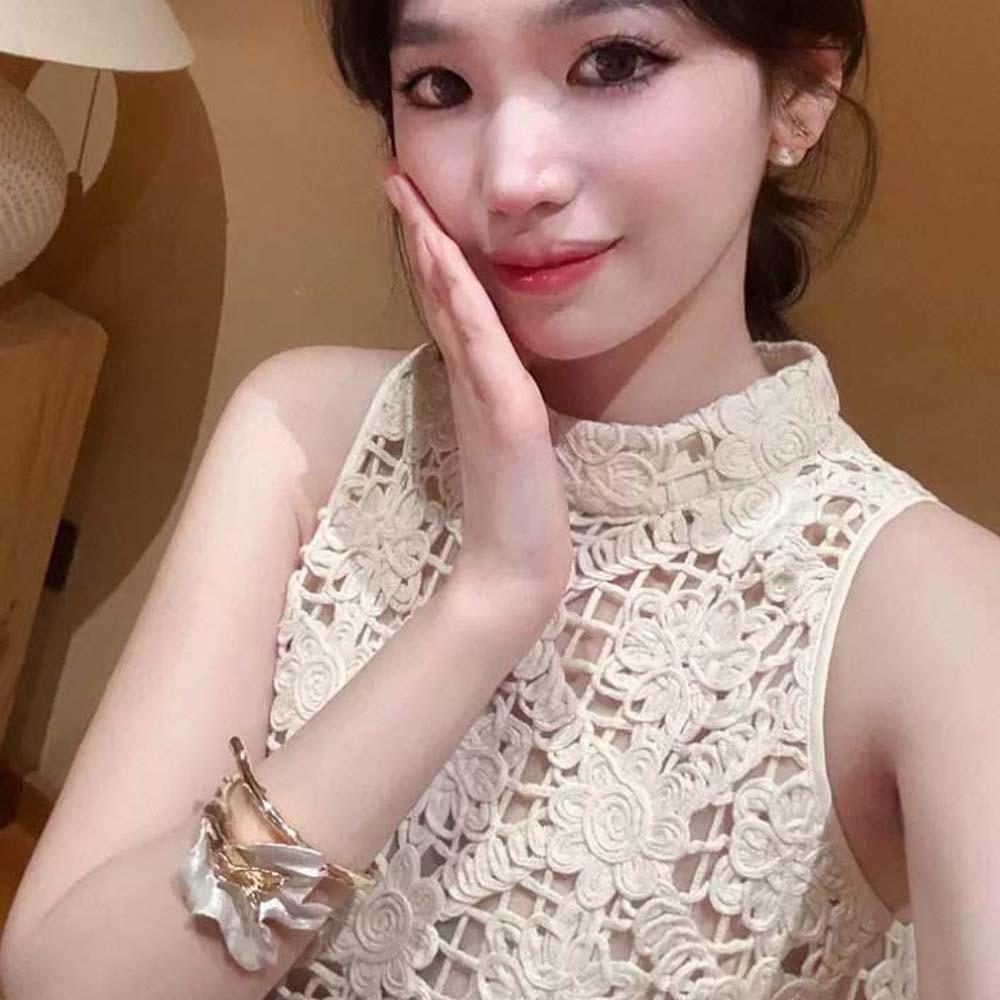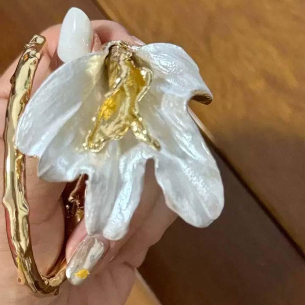 Открывающийся браслет-тюльпан, преувеличенное женское украшение на запястье, классический золотой и белый браслет, на каждый день