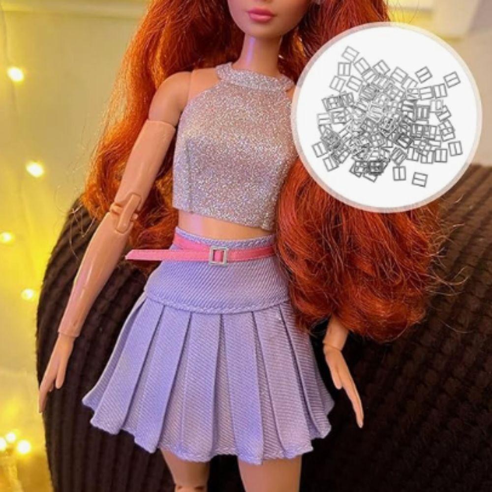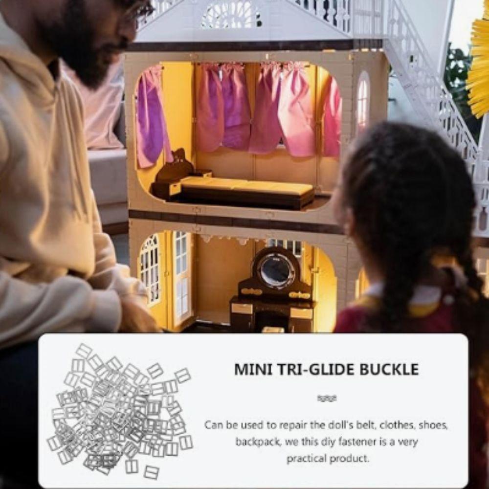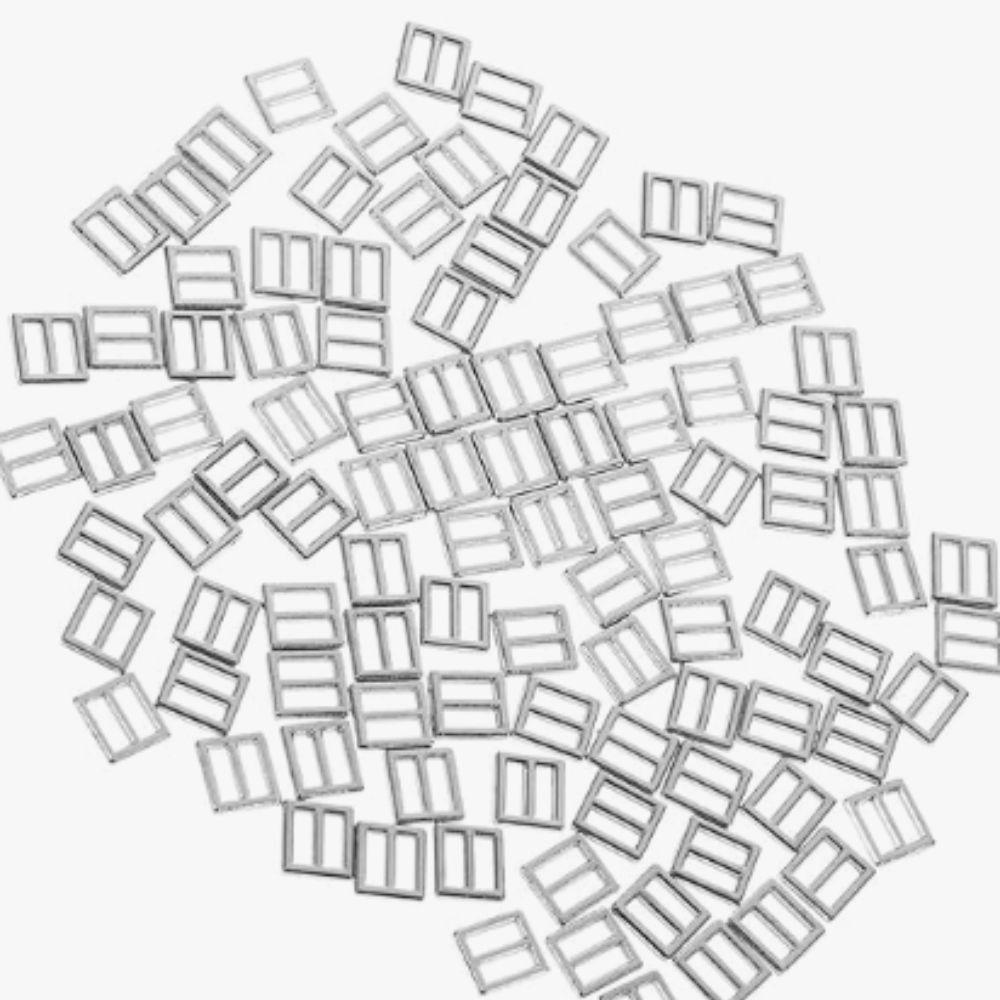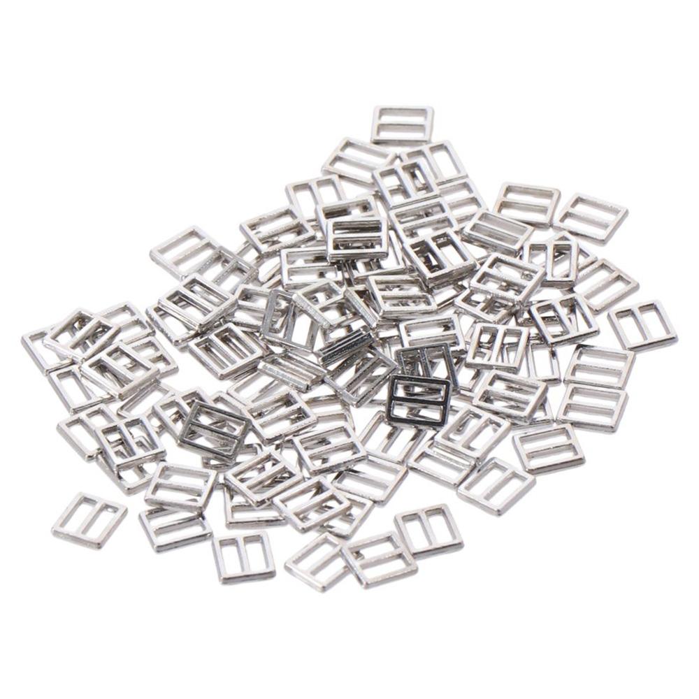 100pcs Sliver Miniature Doll Belt Buckles Metal Rectangle Adjuster for Clothing DIY