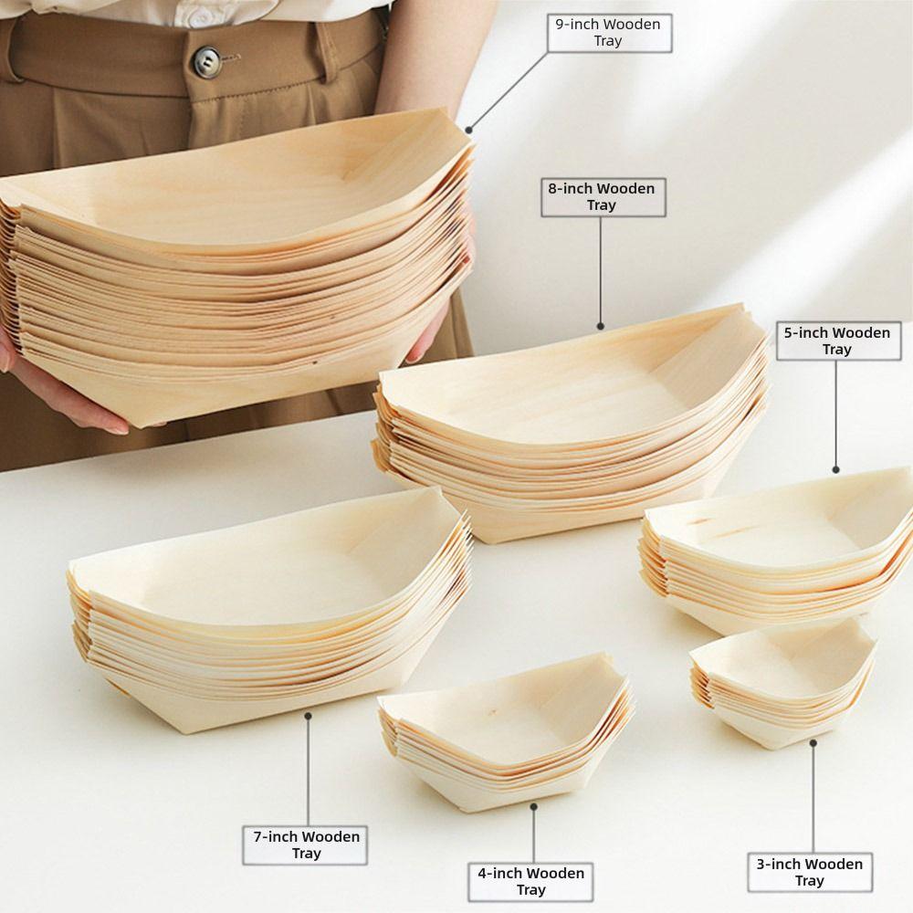 Одноразовая деревянная тарелка разных размеров в форме лодочки, поднос в форме лодочки