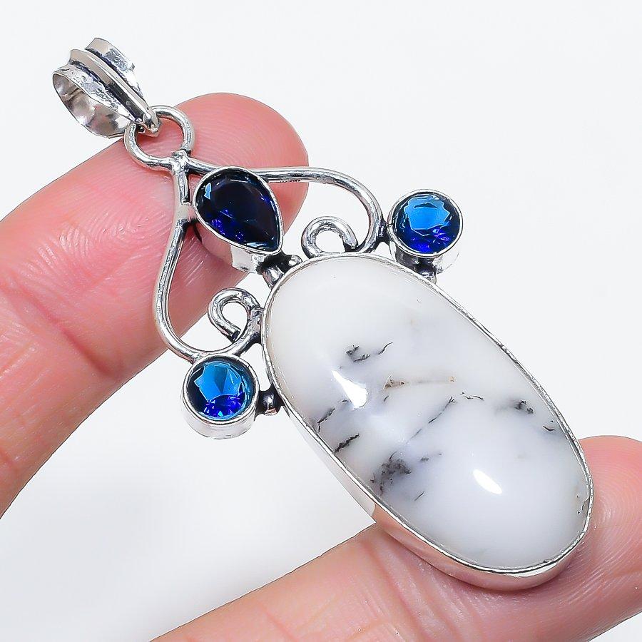 Natural Dendrite Opal, Topaz 925 Sterling Silver Jewelry Pendant 2.60" AP-13579