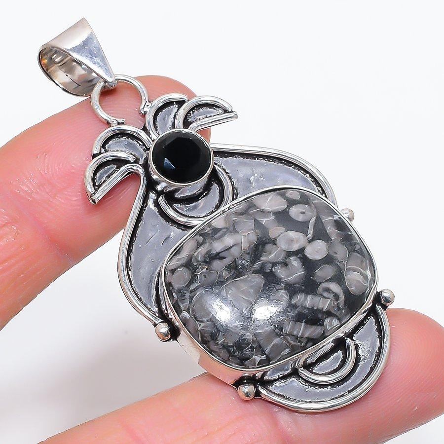 Natural Crinoid, Spinel Gemstone 925 Sterling Silver Jewelry Pendant 2.60" AP-12039
