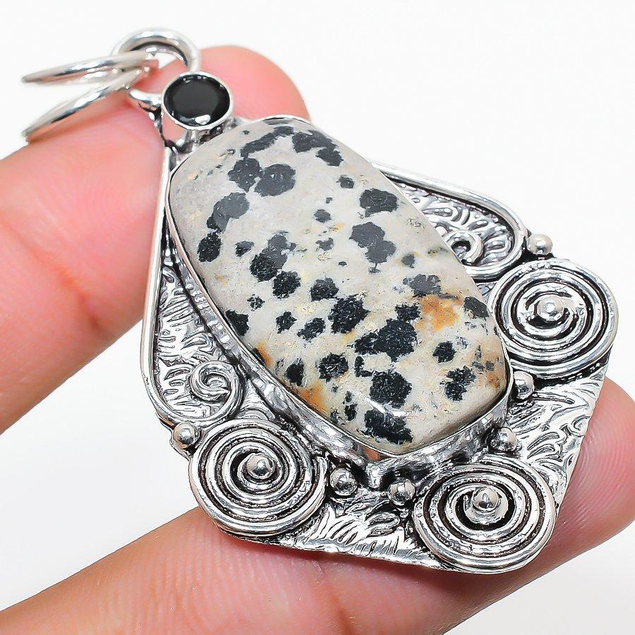 Natural Dalmation Jasper, Spinel Gemstone 925 Sterling Silver Pendant 2.56" AP-2175