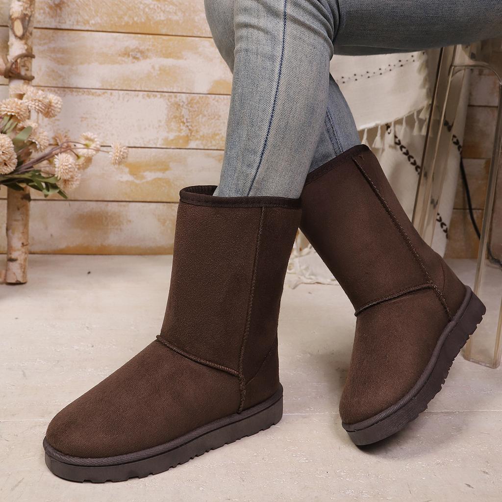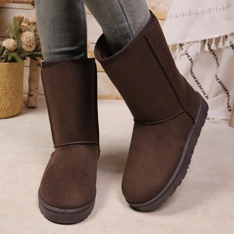 Женские зимние сапоги до икры широкой полноты на флисовой подкладке - Зимние сапоги на толстой подошве с прямым голенищем и плюшевой подкладкой, Теплые сапоги-платформы для снега