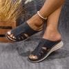Женские босоножки-клинья с Т-образным ремешком, толстая подошва с прострочкой и полым дизайном, летние повседневные слипоны, широкий размер