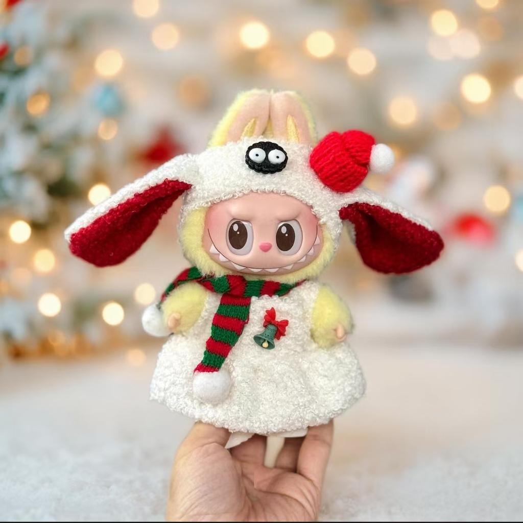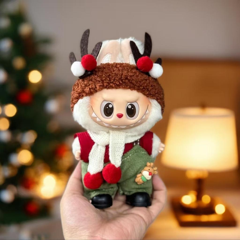 Для 17см куклы Лабубу Набор костюма Санта-Клауса Рождественская плюшевая одежда с аксессуарами Милый подарок