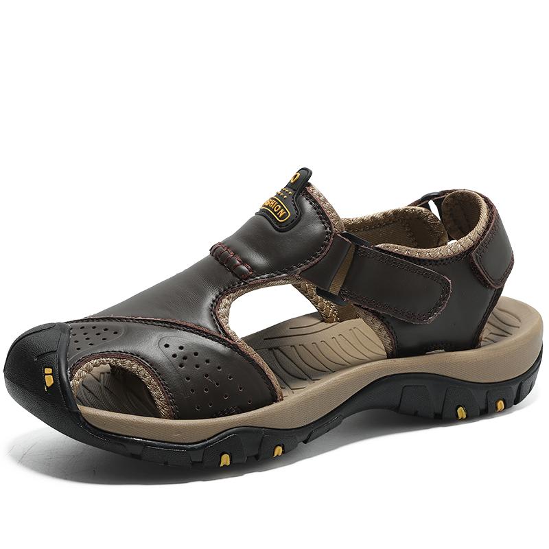 Мужские летние сандалии из натуральной кожи, модные пляжные сандалии, повседневная походная обувь