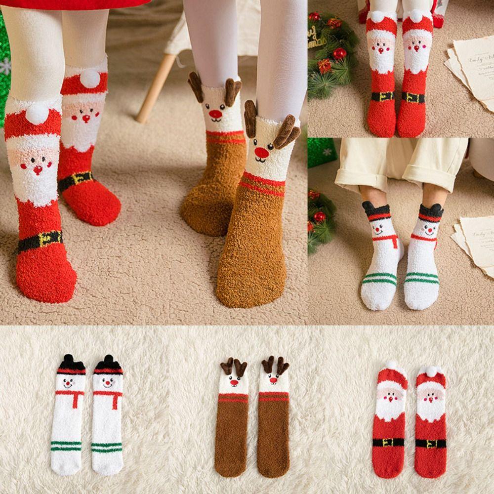 Сохраняющие тепло носки средней длины из кораллового флиса, плюшевые носки с Санта-Клаусом, мягкие рождественские носки, Рождество — купить товар онлайн с бесплатной доставкой по всему миру!