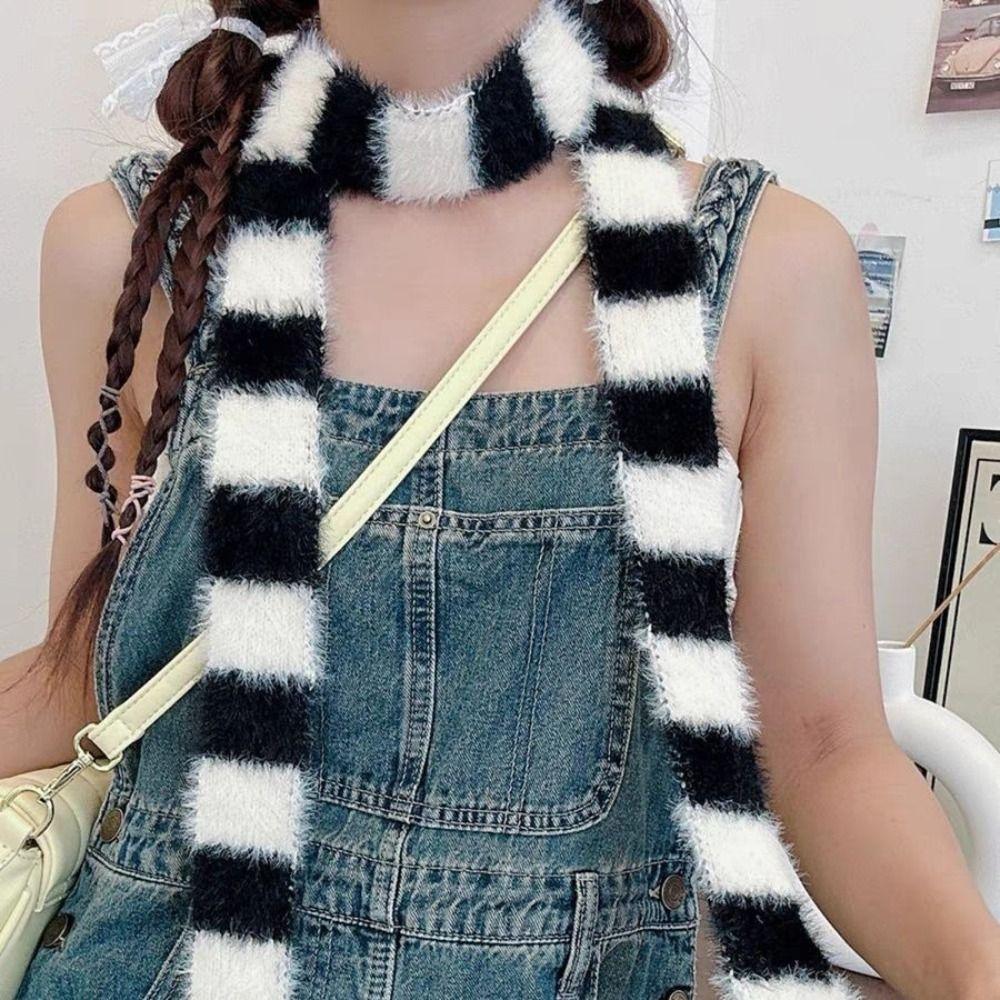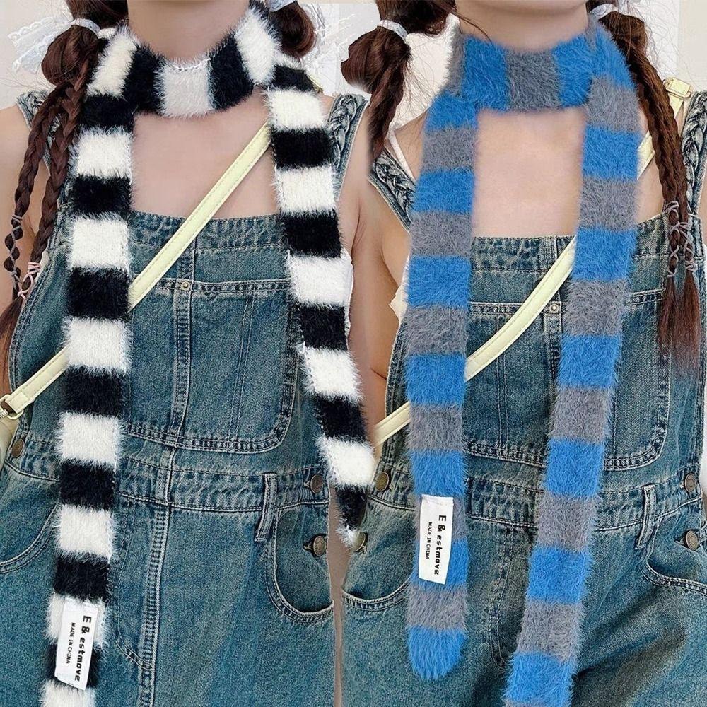 Warm Neck Y2K Girl Stripe Scarf Slim Thin Scarf Harajuku Style Neck Scarves Autumn Winter