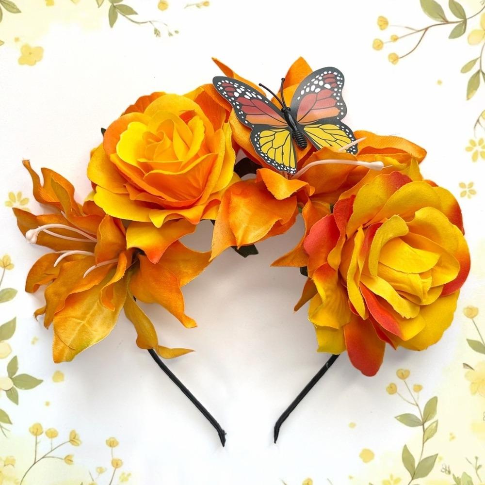 Butterfly Design Flowers Headband Handmade Rose Flower Crown For Women Girl