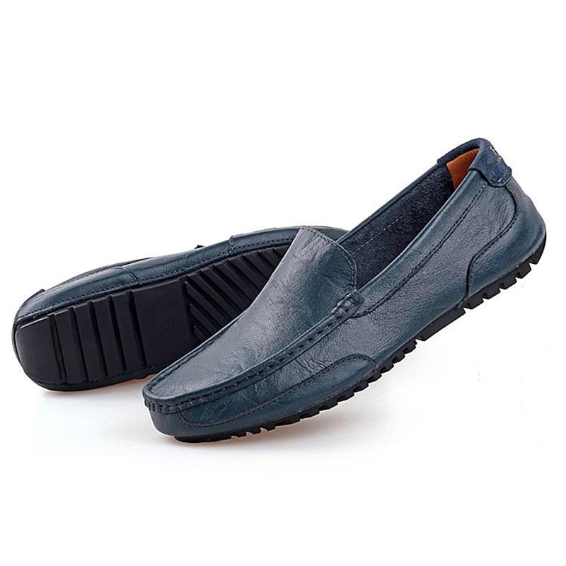 Модная обувь из натуральной кожи Мужские лоферы Плоские Повседневные туфли для вождения Бренд Мужская обувь Черный Желтый Синий Мягкий